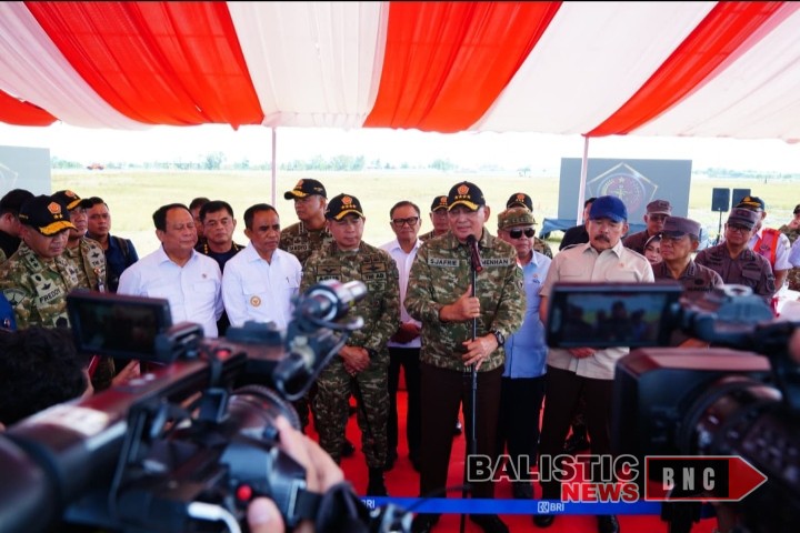 Balisticnews.com (Puspen TNI). Panglima TNI Jenderal TNI Agus Subiyanto mendampingi Menteri Pertahanan RI Sjafrie Sjamsoeddin bersama Jaksa Agung ST Burhanuddin, Kepala BPKP Muhammad Yusuf beserta pejabat terkait, menyaksikan secara langsung pelaksanaan Latihan Komando Gabungan (Kogab) TNI yang terintegrasi Tahun 2025 di kawasan Bandara PT IMIP, Morowali, Sulawesi Tengah, Kamis (20/11/2025).