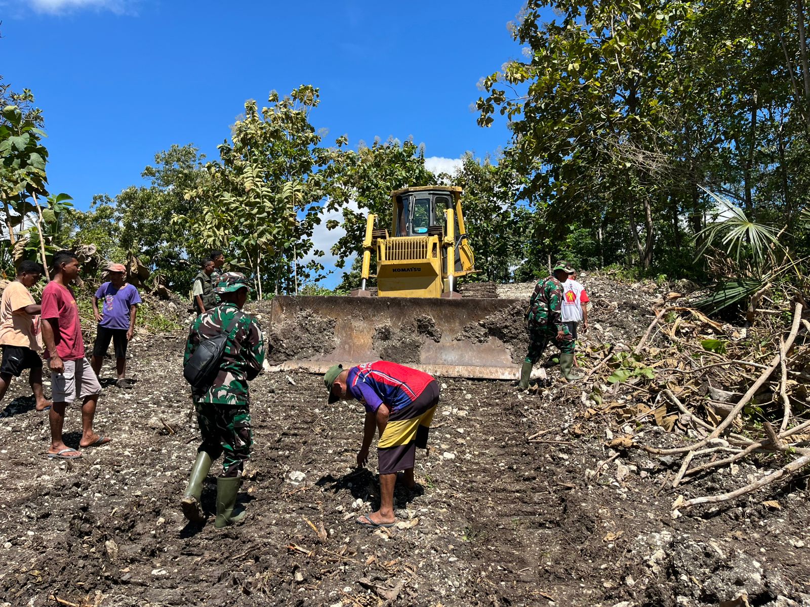 Ende – Semangat kebersamaan tampak jelas dalam pelaksanaan program TNI Manunggal Membangun Desa (TMMD) Ke-128 Tahun Anggaran 2026 di Desa Aelipo, Kecamatan Wewaria, Kabupaten Ende, Jumat (24/4/2026). Antusiasme masyarakat terlihat tinggi dengan turut serta membantu proses pembukaan jalan yang menjadi sasaran utama kegiatan.