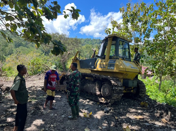 Ende – Semangat kebersamaan tampak jelas dalam pelaksanaan program TNI Manunggal Membangun Desa (TMMD) Ke-128 Tahun Anggaran 2026 di Desa Aelipo, Kecamatan Wewaria, Kabupaten Ende, Jumat (24/4/2026). Antusiasme masyarakat terlihat tinggi dengan turut serta membantu proses pembukaan jalan yang menjadi sasaran utama kegiatan.