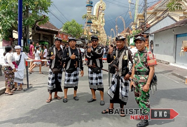 BALI – Badung, Dalam rangka memberikan perhatian serta mengamankan jalannya Festival Perlombaan Penjor, Babinsa Serda Al Syahdan dan Serda Candra Gunawan, turut serta mengamankan Festival yang berlangsung di Desa Adat Kerobokan. Acara ini bertempat di Jalan Raya Kerobokan Banjar Gede, Kelurahan Kerobokan, Kecamatan Kuta Utara, Kabupaten Badung. Minggu, (23/11/25).
