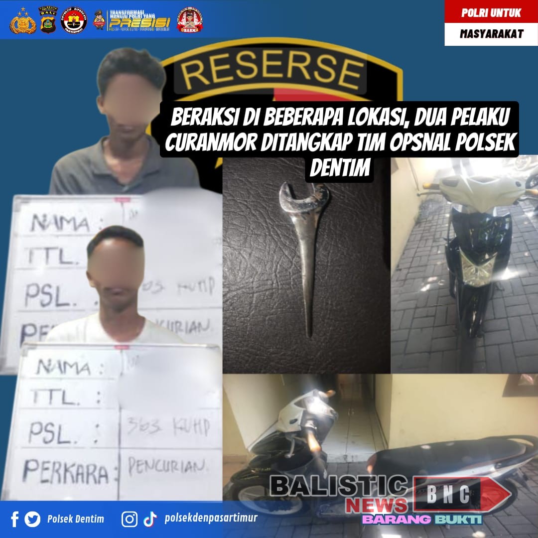 Balisticnews.com Tim Opsnal Polsek Denpasar Timur (Dentim) berhasil mengungkap kasus pencurian kendaraan bermotor (curanmor) yang terjadi di Jalan Hayam Wuruk No. 100, Denpasar Timur, setelah mengamankan dua orang pelaku asal Sumenep, Jawa Timur. Kedua pelaku diketahui beraksi di beberapa lokasi dan menggunakan kunci palsu jenis letter T dalam melakukan aksinya.