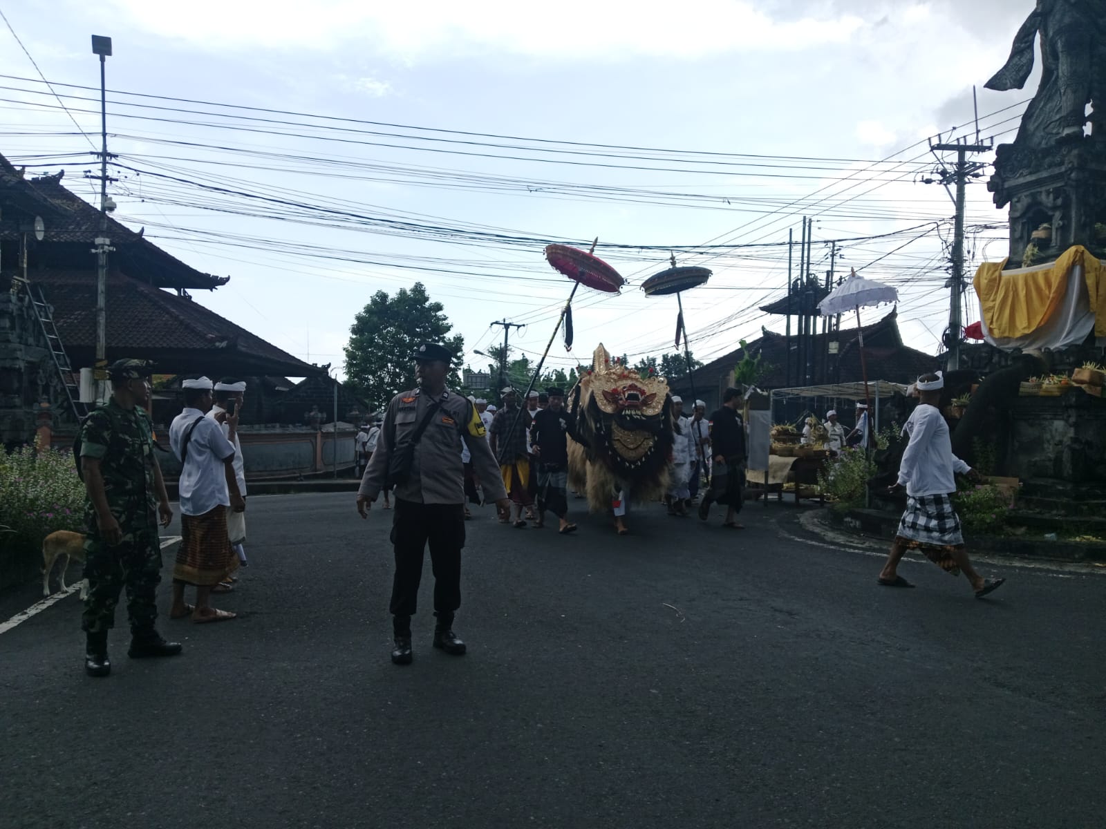 Dalam pelaksanaan kegiatan tersebut, Bhabinkamtibmas Desa Tojan bersinergi dengan Pecalang Desa Adat Tojan melaksanakan pengaturan arus lalu lintas di sekitar lokasi upacara.