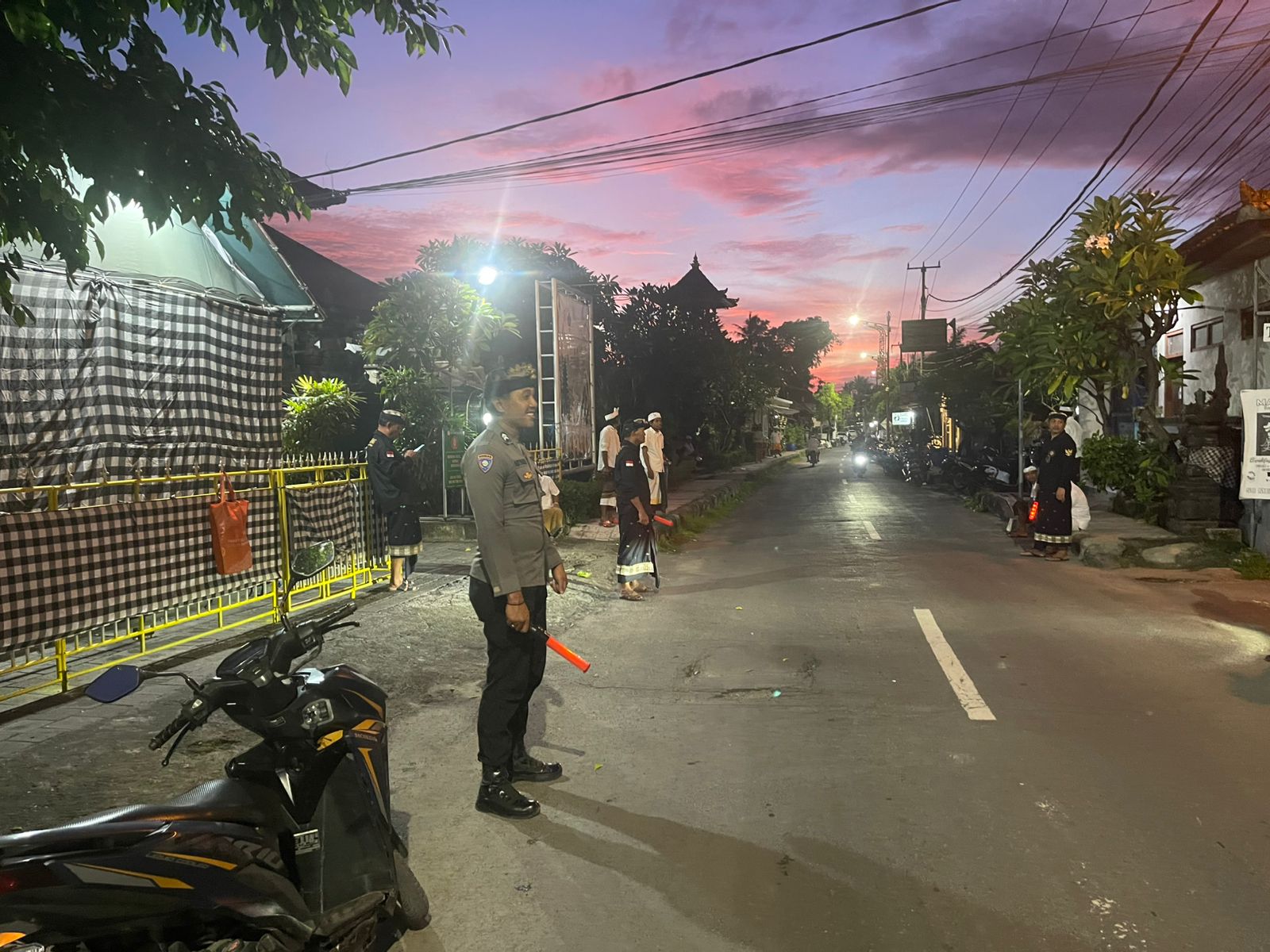 Dalam kesempatan tersebut, Bhabinkamtibmas bersama Pecalang Desa Adat Kutampi hadir untuk melaksanakan pengaturan arus lalu lintas di sekitar lokasi upacara, sekaligus memberikan rasa aman dan nyaman kepada pengguna jalan raya serta seluruh warga yang mengikuti rangkaian upacara keagamaan tersebut.