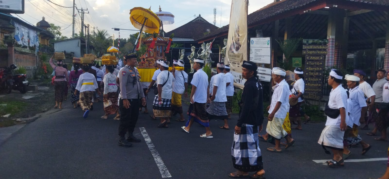 Pengamanan tersebut dilakukan dalam rangka atensi kegiatan mesucian Ida Bhatara Sesuhunan Pura Puseh Desa Adat Bakas yang menuju Pura Hyang Bungbung sebagai bagian dari rangkaian persiapan nyangra piodalan yang jatuh pada Rabu, 29 April 2026.