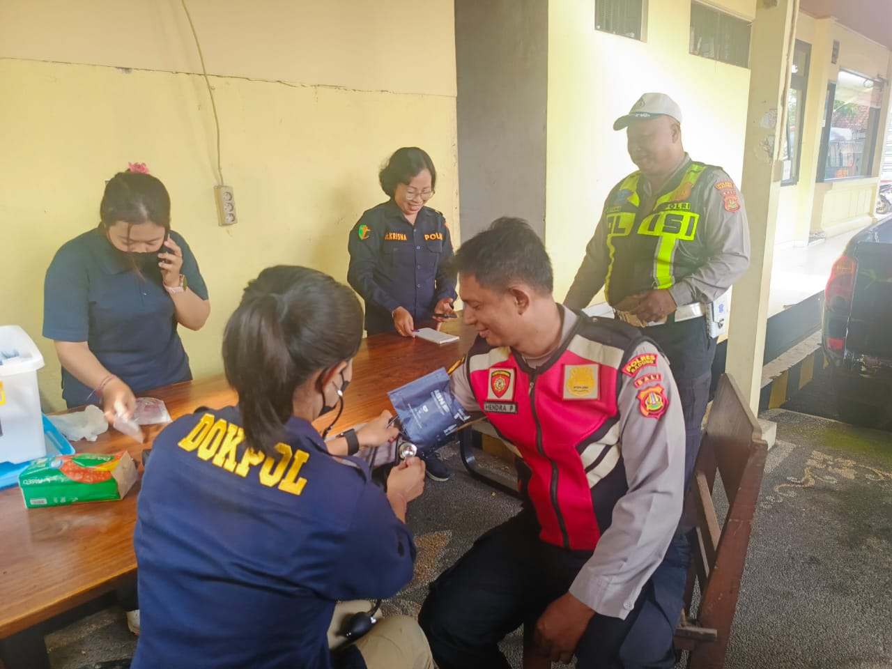 Pemeriksaan kesehatan yang dilaksanakan oleh Sie Dokkes Polres Badung di pimpin langsung Kasi Dokes Iptu Dr. Gusti Ayu Sukrisnawati bertujuan untuk memeriksa kesehatan anggota dan mengetahui kondisi kesehatan saat ini sehingga dapat melaksanakan tugas dengan baik.