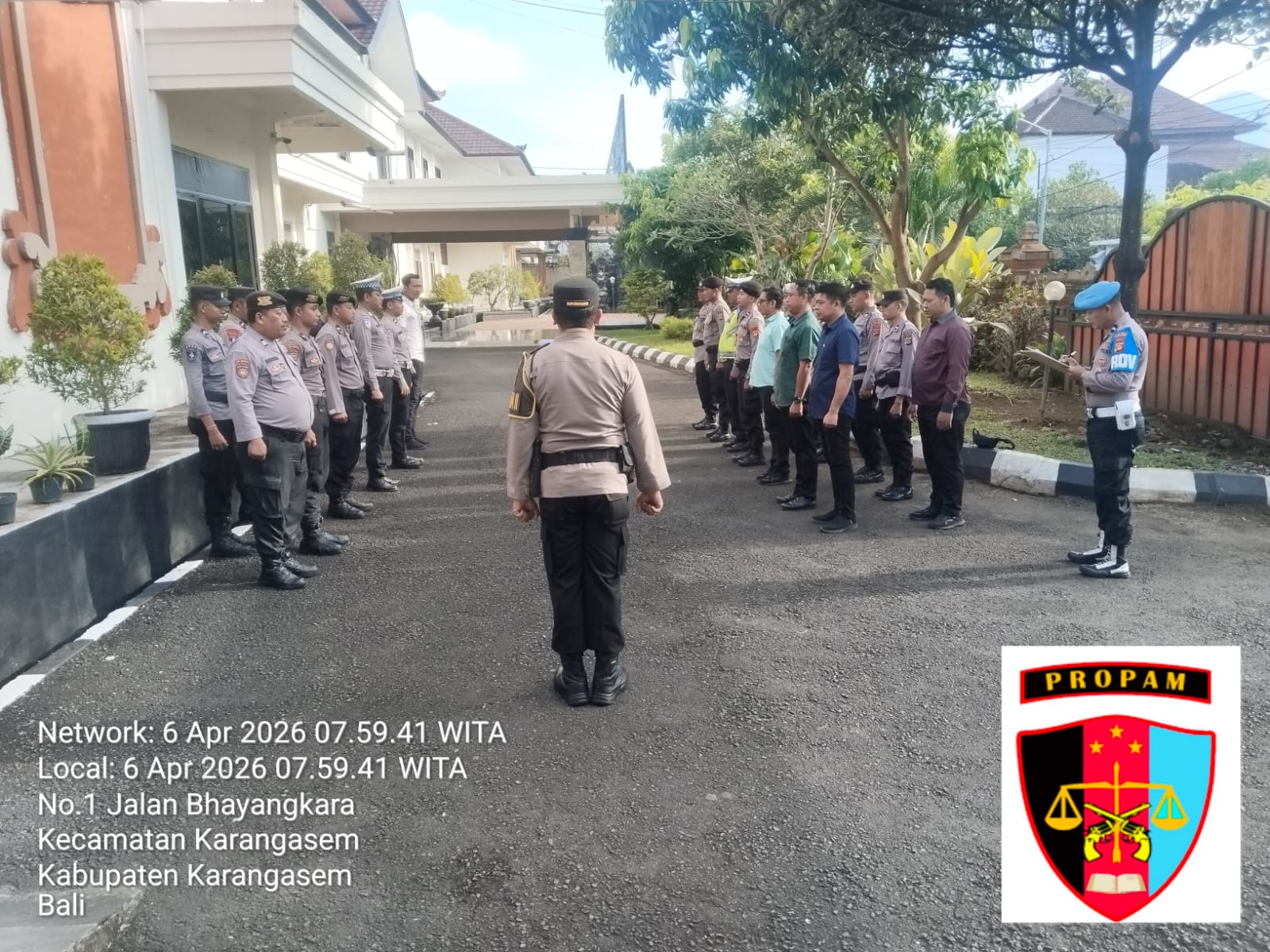 Sipropam Polres Karangasem senantiasa memastikan bahwa personel yang melaksanakan tugas malam benar-benar siap dan memahami tanggung jawabnya.