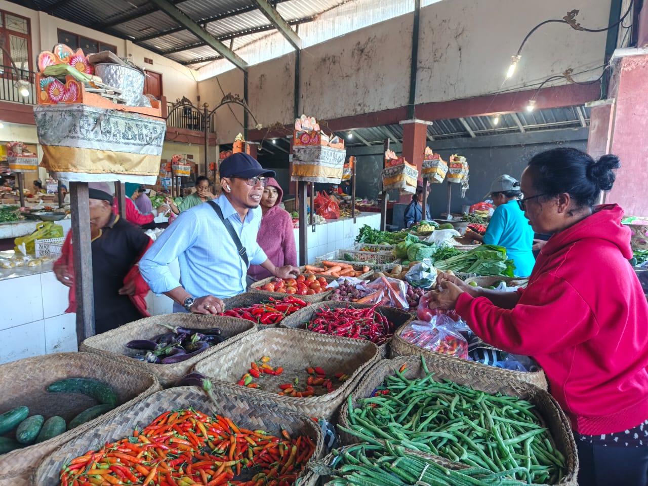 Selain itu, stok bahan pokok terpantau masih mencukupi, dengan distribusi yang berjalan lancar. Daya beli masyarakat serta aktivitas pengunjung pasar juga berada dalam kondisi normal tanpa adanya gejolak yang berarti.