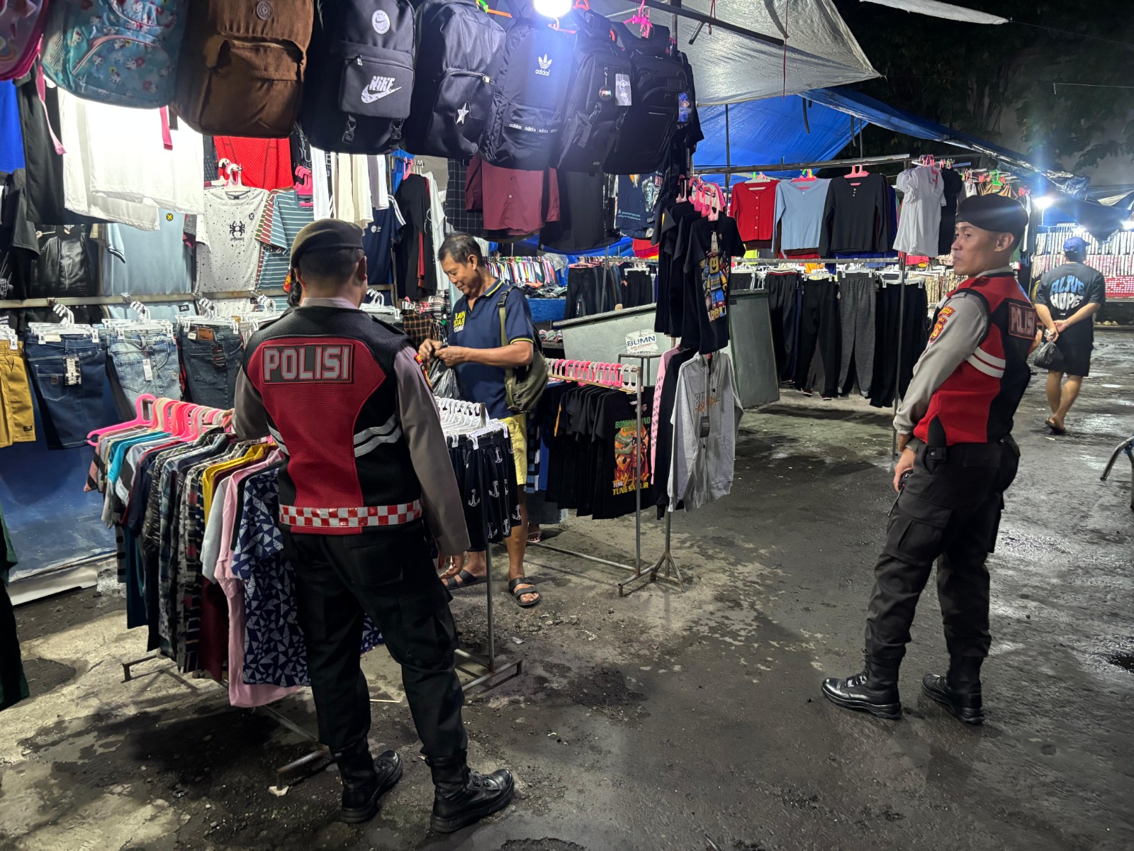 Tidak hanya sekadar melintas, petugas di lapangan juga melakukan pendekatan dialogis dengan warga, pedagang, maupun pengunjung yang masih beraktivitas.
