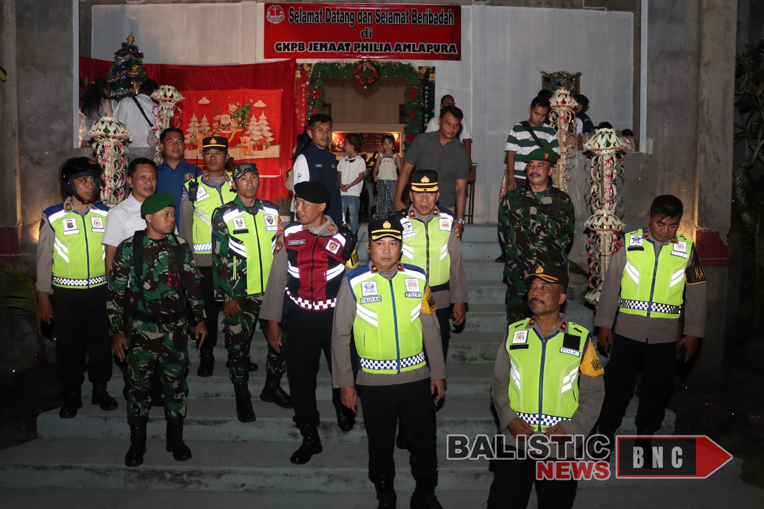 Tim yang dipimpin Wakapolres mengunjungi Gereja Kristen Protestan di Bali (GKPB) Jemaat Philia Amlapura. Dalam kesempatan tersebut, Wakapolres Karangasem beserta PJU Polres Karangasem melaksanakan pemantauan situasi pelaksanaan Ibadah Malam Kudus Natal Tahun 2025 yang bertema “Menjadi Gereja Pembawa Damai” dengan sub tema “Terang Kristus Menyembuhkan dan Memberi Sukacita Bagi Dunia Yang Terluka”.