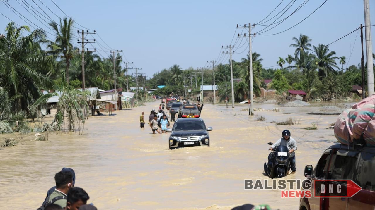 Balisticnews.com Kuala Simpang — Ketika banjir bandang dan luapan sungai menenggelamkan hampir seluruh wilayah Aceh Tamiang, Kapolda Aceh Irjen Pol. Drs. Marzuki Ali Basyah menunjukkan kepemimpinan yang tidak hanya strategis, tetapi juga sangat humanis. Didampingi Pejabat Utama Polda Aceh, beliau menempuh perjalanan darat selama lima hari penuh, melewati jalur yang terputus, terendam air, tertutup lumpur pekat, serta di sejumlah titik harus menyeberang dengan perahu karena jalan raya berubah total menjadi sungai berarus deras.