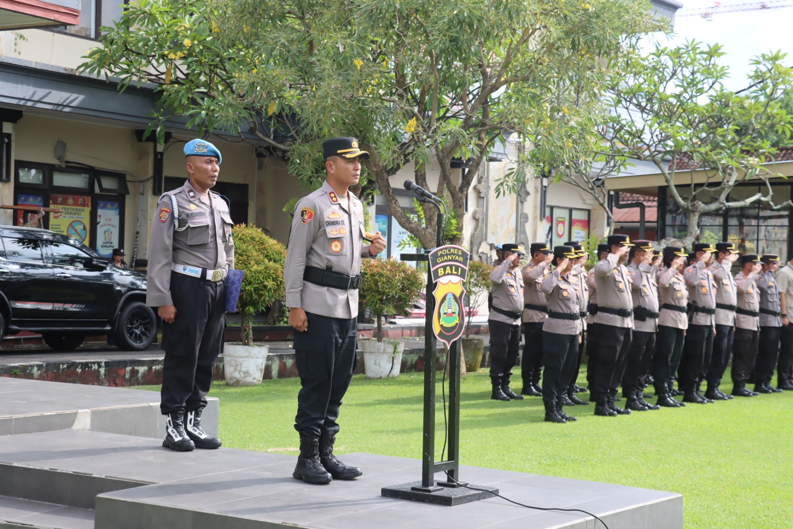 Apel tersebut dipimpin langsung oleh Kapolres Gianyar Chandra C. Kesuma, serta dihadiri oleh Wakapolres Gianyar Willa Jully Nendissa, para Pejabat Utama (PJU) Polres Gianyar, dan para Kapolsek jajaran.