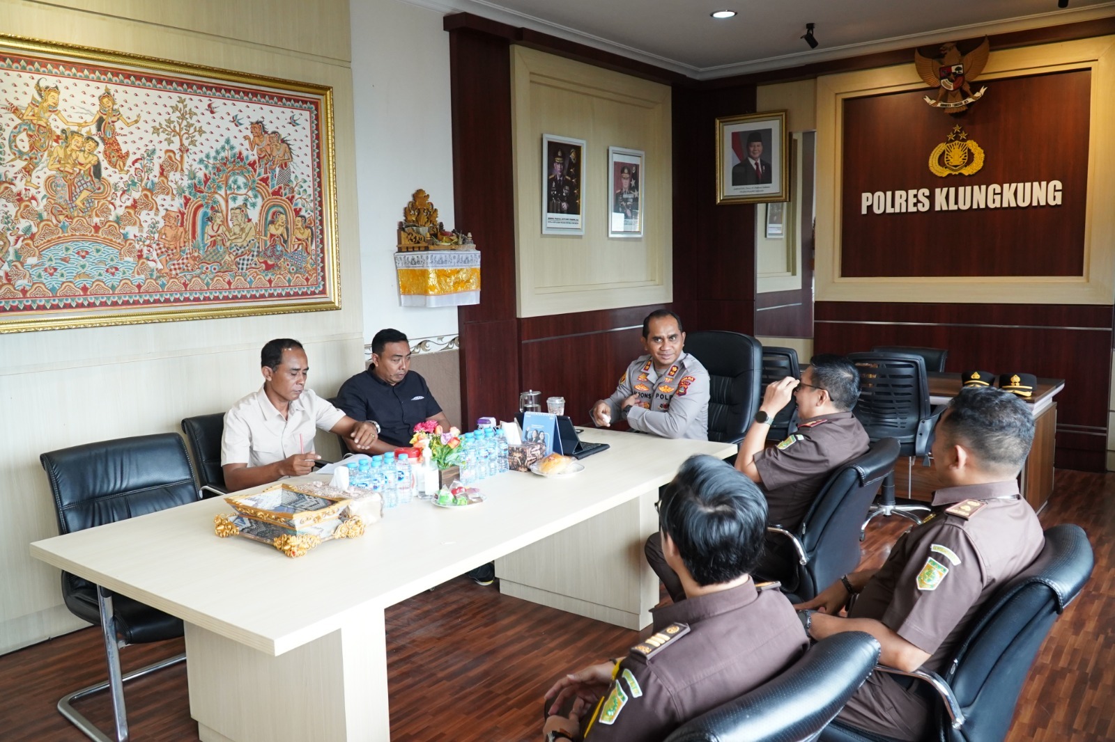 Dalam kesempatan tersebut, Plt. Kapolres Klungkung didampingi oleh Kasat Narkoba Polres Klungkung dan KBO Reskrim Polres Klungkung. Kunjungan kerja ini dilaksanakan dalam rangka perkenalan diri Kajari Klungkung sebagai pejabat baru di lingkungan Forum Koordinasi Pimpinan Daerah (Forkopimda) Kabupaten Klungkung.