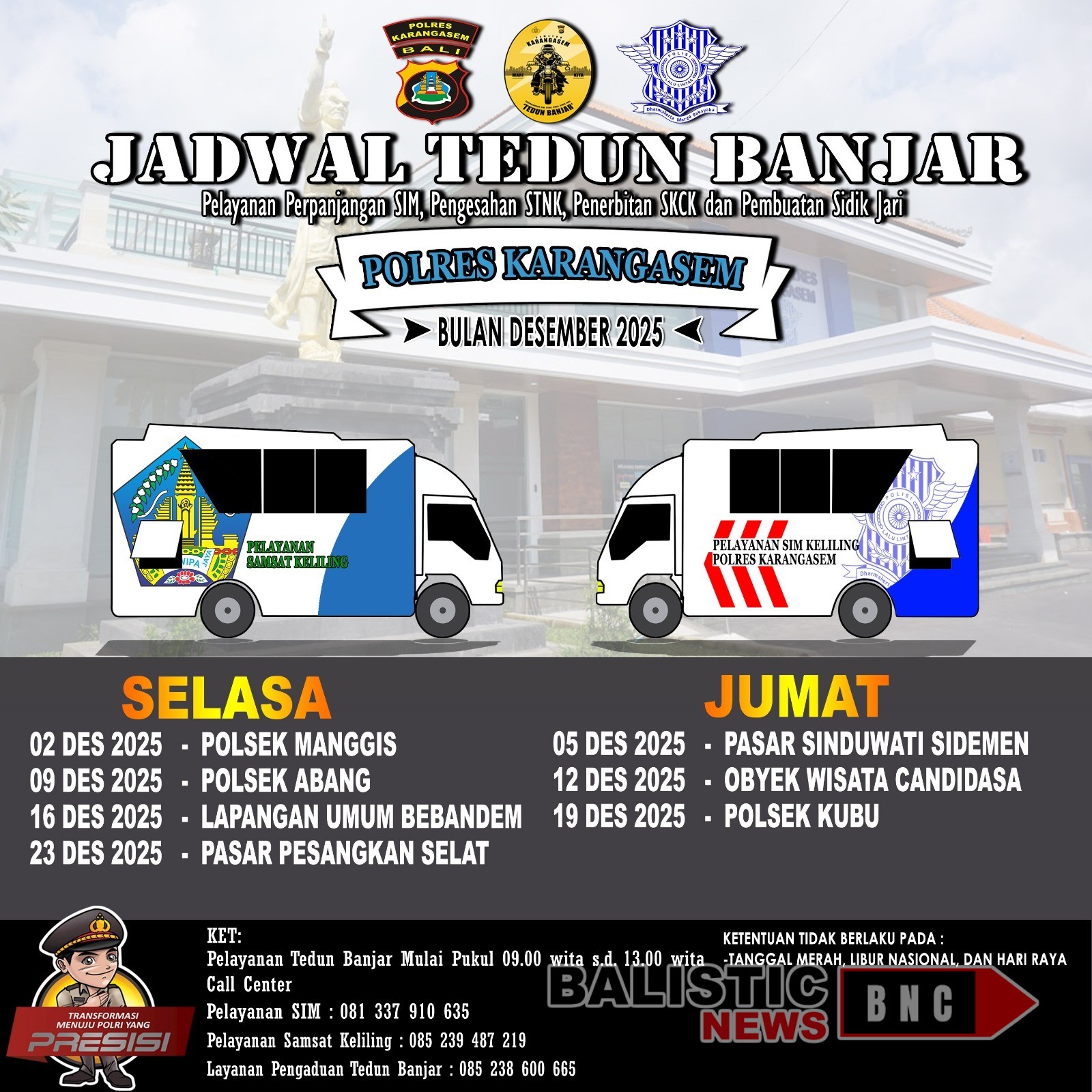 Simak jadwal dan lokasi Samsat dan SIM keliling yang digelar Satlantas Polres Karangasem .