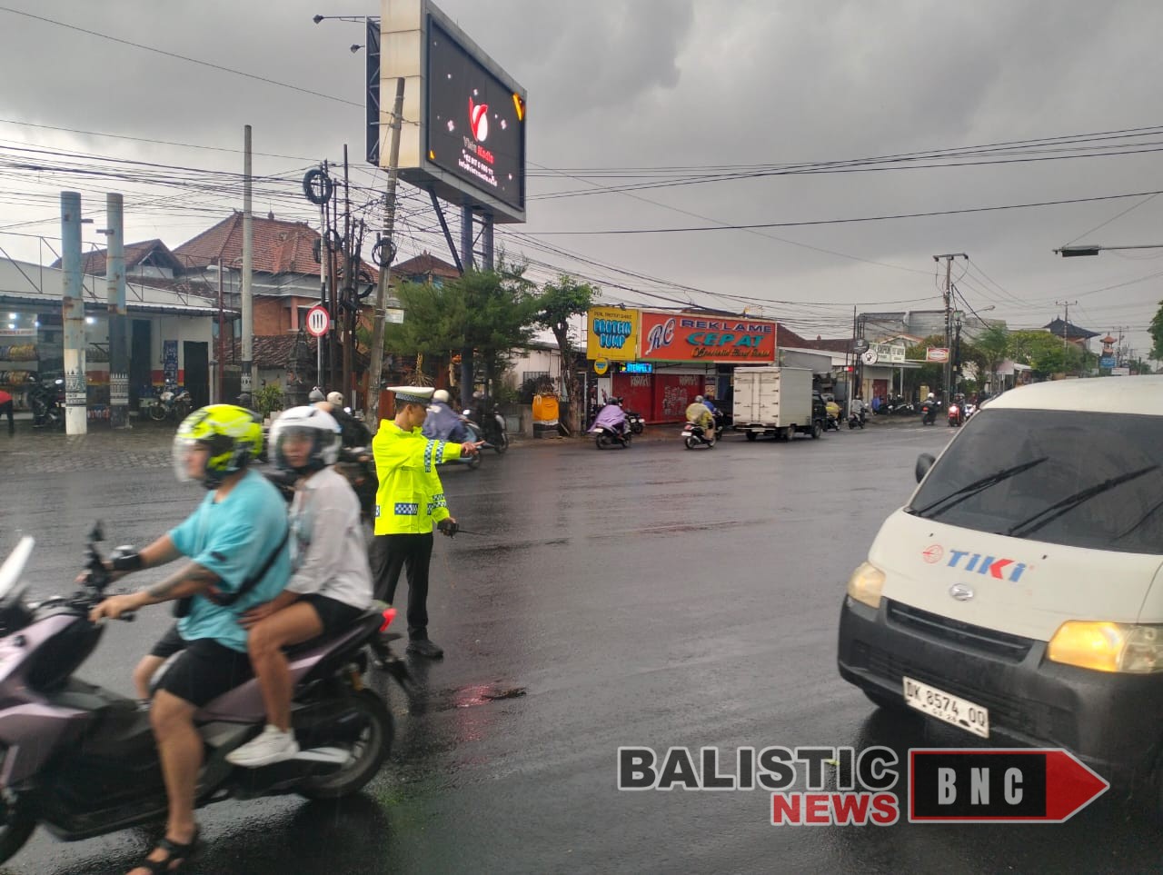Balisticnews.com Denpasar – Meskipun diguyur hujan, personel Polisi Lalulintas Polsek Denpasar Barat (Polsek Denbar) tetap melaksanakan pelayanan pengaturan lalu lintas (gatur lalin) di sejumlah titik rawan kemacetan pada Senin (24/11/2025) pagi.