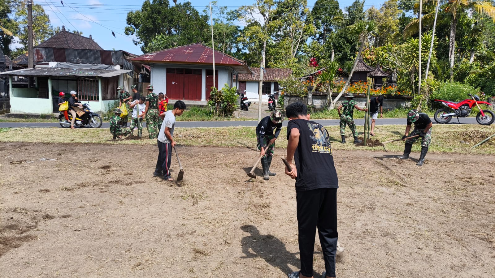 Karangasem – Upaya untuk menyediakan sarana olah raga untuk Warga Desa Pempatan, Satgas TMMD ke – 128 Kodim 1623/Karangasem kebut pembuatan lapangan voli bertempat di Dusun Kubakal, Desa Pempatan, Kec.Rendang, Kab.Karangasem pada Rabu (29/04/26)