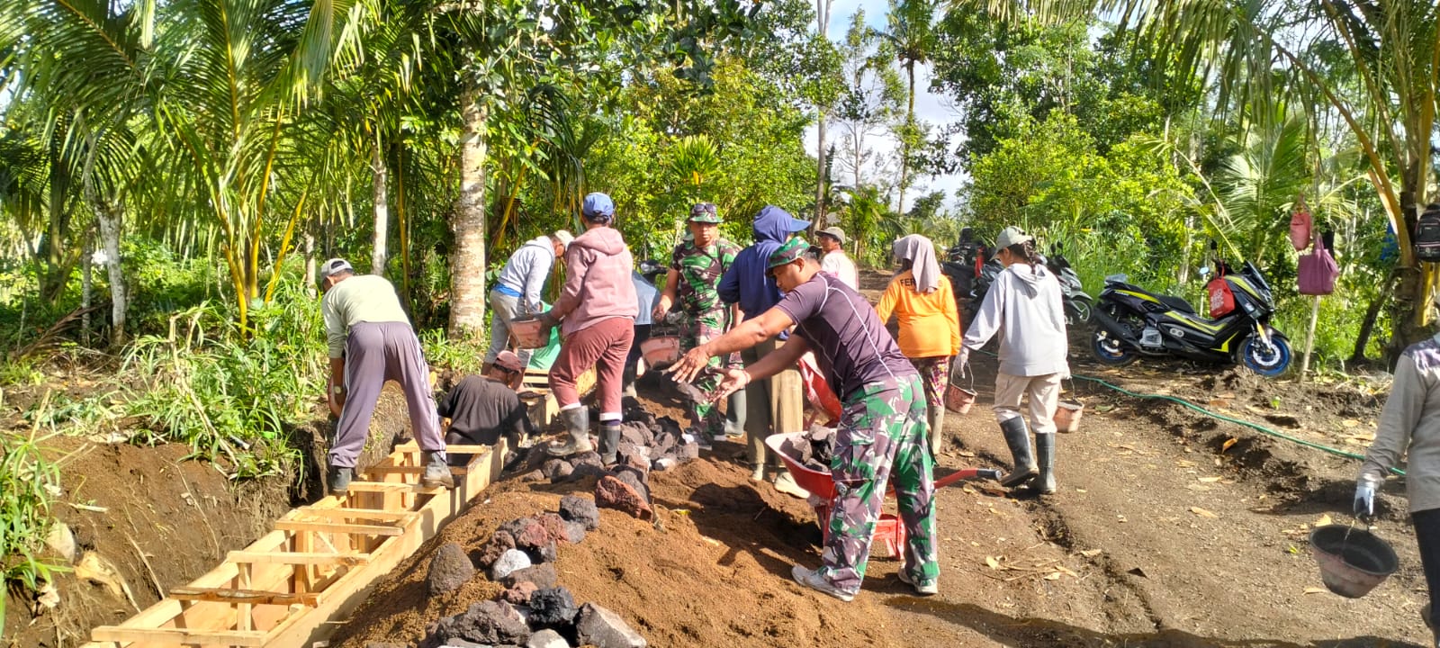 Pembuatan saluran Beton cyclop di Dusun Kubakal berjalan 32% dikerjakan satgas TMMD ke-128 Kodim 1623/Karangasem