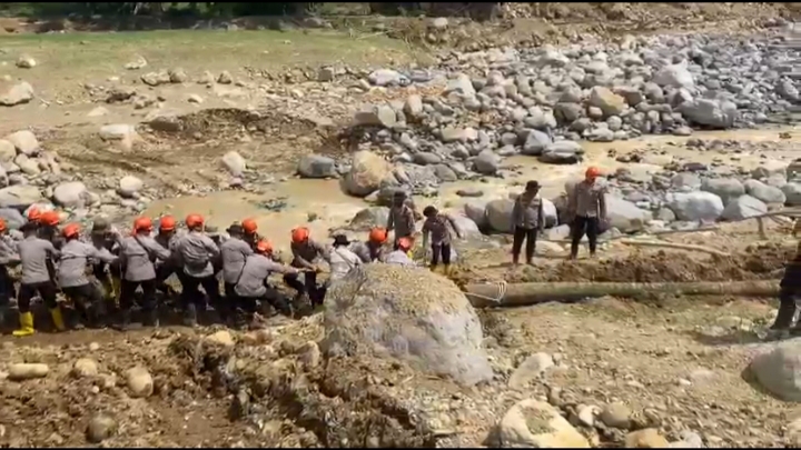 Dalam kegiatan tersebut, personel Brimob bergotong royong mengangkut kayu serta material dasar untuk membangun jembatan darurat. Jembatan ini sangat dibutuhkan masyarakat setempat karena menjadi akses utama penghubung antar desa yang sempat terputus akibat bencana.