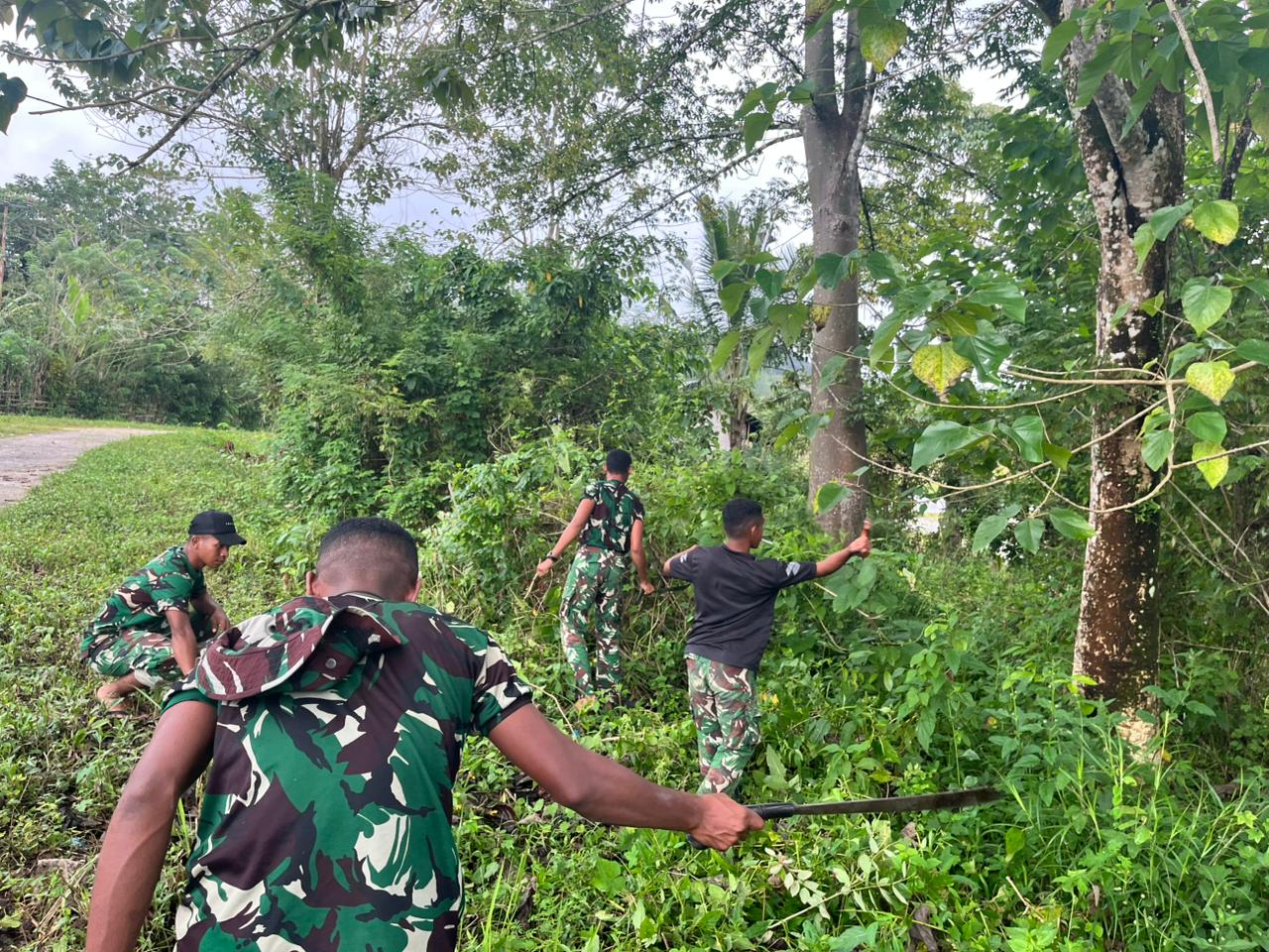 Kegiatan pembersihan tersebut dilakukan dengan membersihkan semak belukar dan meratakan jalur yang akan dijadikan akses jalan bagi masyarakat. Dengan penuh semangat gotong royong, personel Satgas TMMD bersama warga setempat bahu-membahu membuka jalur baru guna memperlancar mobilitas masyarakat.