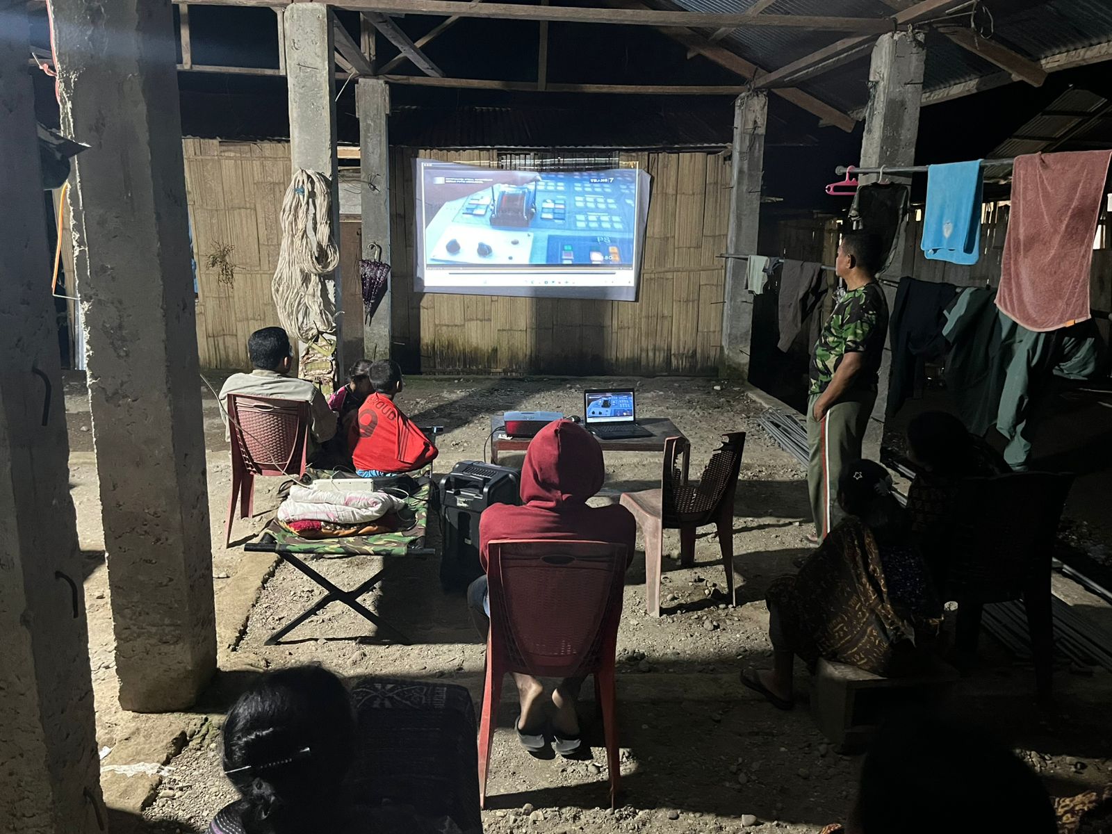 Kegiatan nobar yang dilaksanakan usai aktivitas pembangunan ini menjadi sarana hiburan bagi anggota Satgas dan masyarakat setempat. Di bawah suasana malam yang tenang, warga dari berbagai kalangan berkumpul dan menikmati tontonan bersama dengan penuh keakraban.