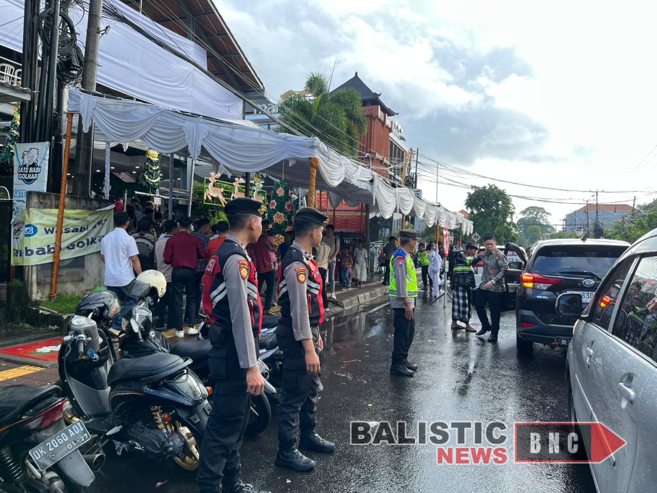 Personel Polda Bali disiagakan di setiap gereja untuk melakukan pengamanan terbuka dan tertutup, pengaturan lalu lintas, serta patroli di sekitar lokasi ibadah.