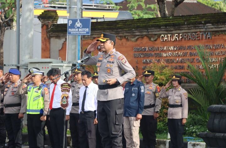 Balisticnews.com KARANGASEM – Bertempat di Lapangan Pesat Gatra, Kapolres Karangasem AKBP I Made Santika, S.H., S.I.K., M.I.K., memimpin langsung kegiatan Apel Jam Pimpinan pada Senin (27/4/2026). Kegiatan ini dihadiri oleh Wakapolres Karangasem Kompol Taufan Rizaldi, S.I.K., M.H., Pejabat Utama (PJU), Kapolsek Jajaran, serta seluruh perwira dan personel Polres Karangasem.
