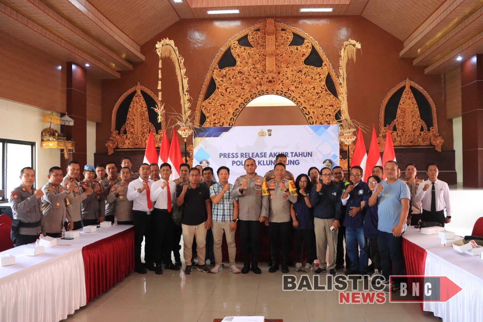 Balisticnews.com Polres Klungkung – Polres Klungkung menggelar Press Release Akhir Tahun 2025 yang berlangsung di Aula Jalaga Dharma Pandapa Polres Klungkung. Kegiatan ini dihadiri oleh Kapolres Klungkung beserta para pejabat utama Polres Klungkung, dan rekan-rekan media cetak dan elektronik,