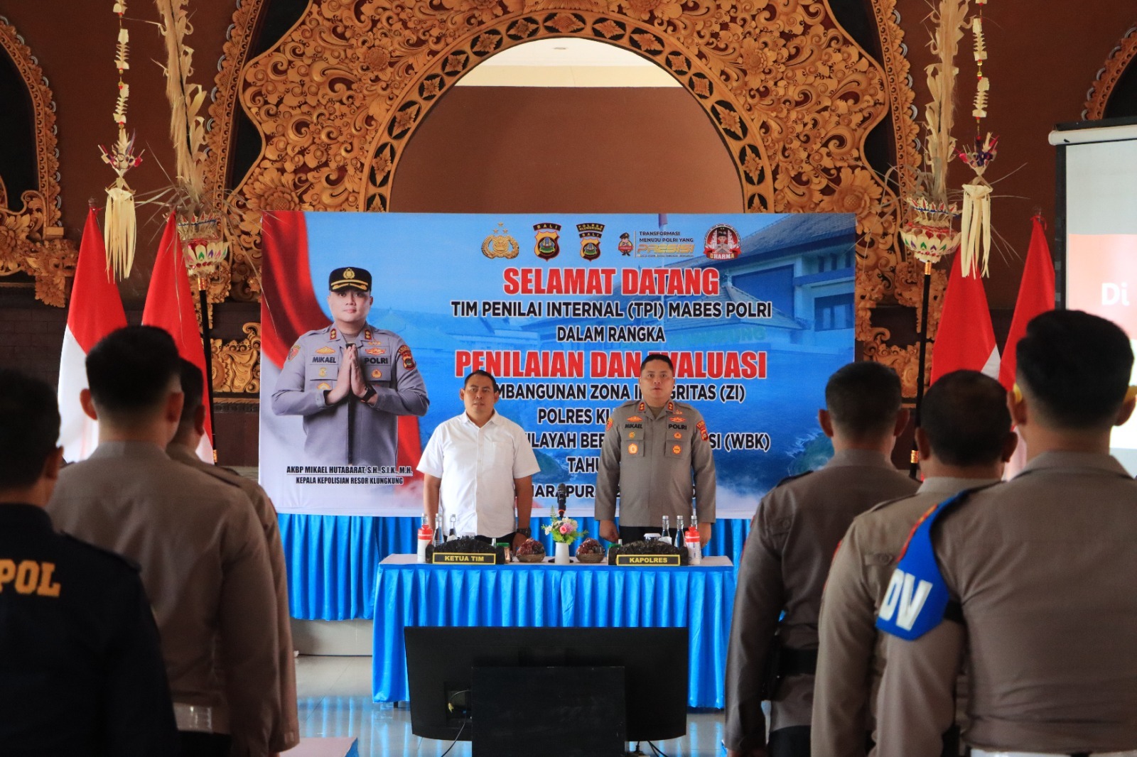 Polres Klungkung – Polres Klungkung menerima kunjungan Tim Penilai Internal (TPI) Mabes Polri dalam rangka pelaksanaan penilaian dan evaluasi pembangunan Zona Integritas (ZI) menuju Wilayah Bebas dari Korupsi (WBK), (29/4).
