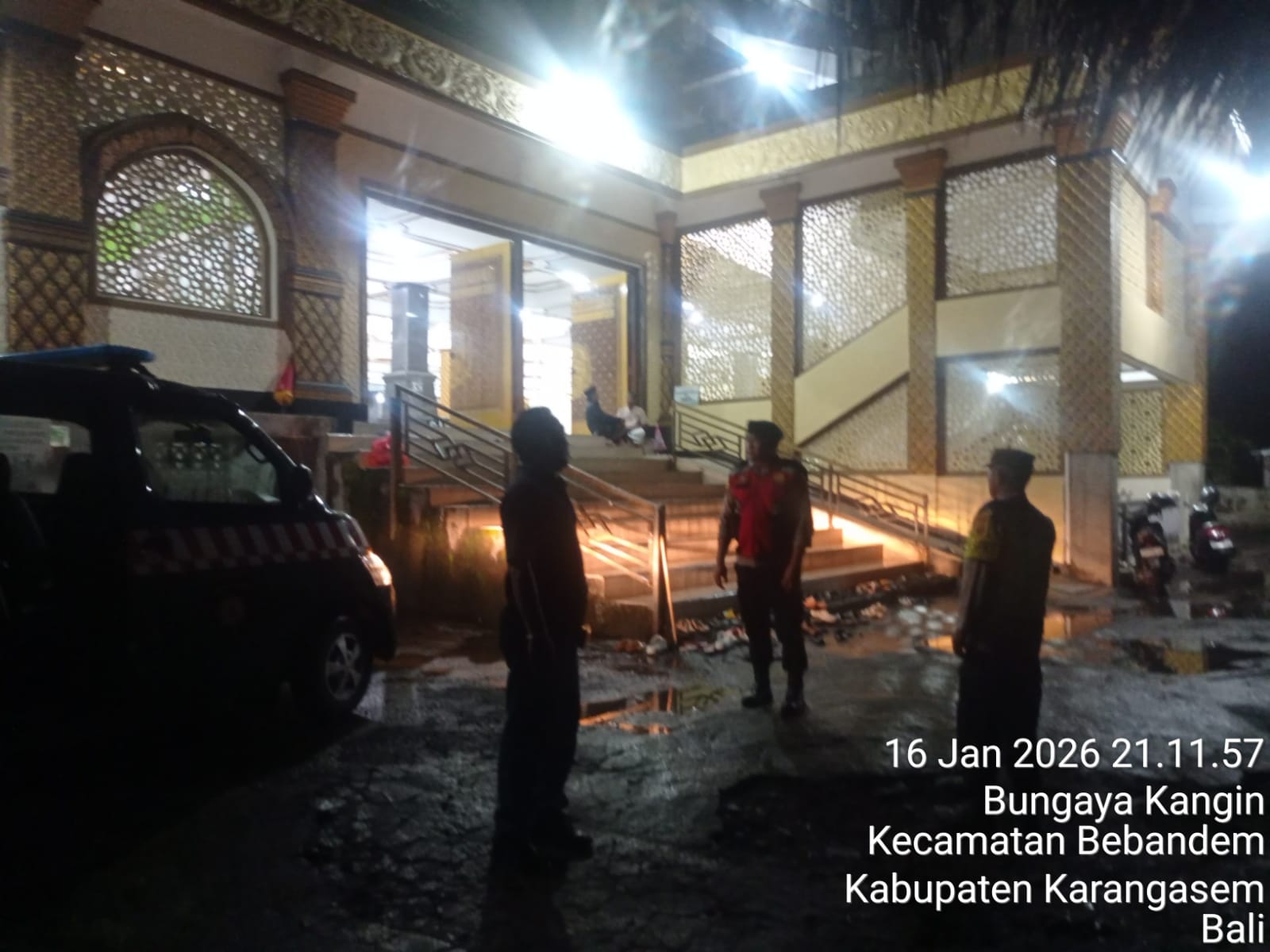 ​BEBANDEM – Guna memastikan kekhusyukan umat Muslim dalam menjalankan ibadah, Personel Polsek Bebandem melaksanakan pengamanan ketat pada peringatan Isra Mi’raj Nabi Muhammad SAW 1447 H di sejumlah titik di wilayah Kecamatan Bebandem, Jumat malam (16/1/2026).
