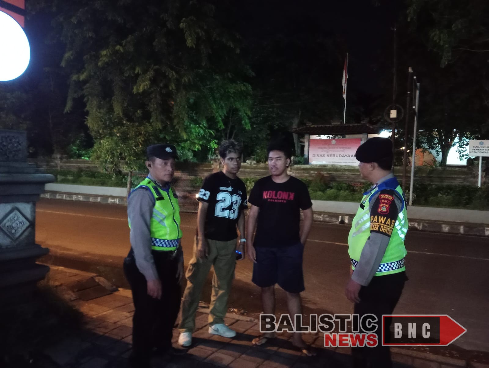 Petugas memberikan imbauan kepada para remaja yang nongkrong di depan mini market 24 jam agar tidak mengonsumsi minuman beralkohol serta menghindari aktivitas yang berpotensi mengganggu ketertiban umum, seperti balap liar (trek-trekan).