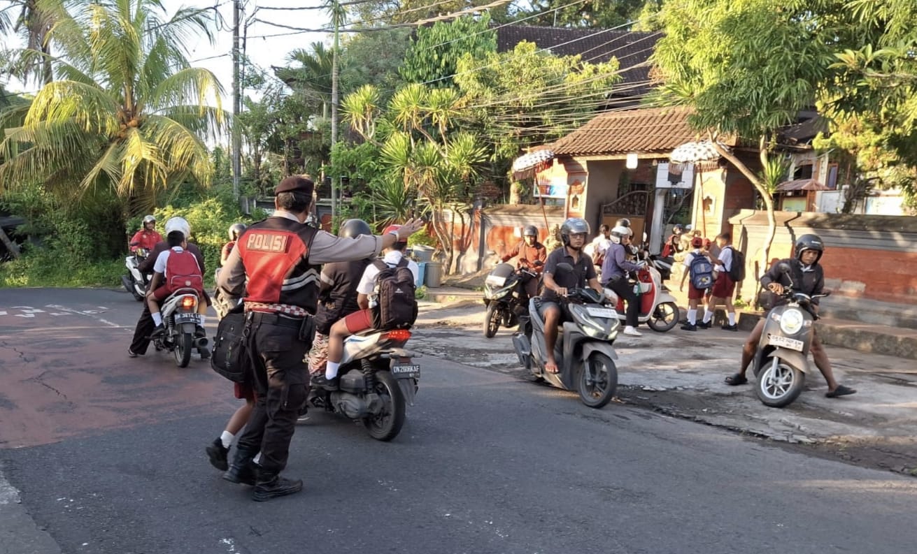 Balisticnews.com Personel Polsek Gianyar melaksanakan kegiatan pengaturan arus lalu lintas (pos pagi) di depan SD Negeri 2 Gianyar, Jalan Ratna Desa Tegal Tugu Kecamatan Gianyar, pada Senin (30/3/2026) pagi. Kehadiran polisi di jam-jam sibuk tersebut bertujuan untuk memberikan rasa aman dan nyaman bagi masyarakat, khususnya para pelajar yang memulai aktivitas sekolah.