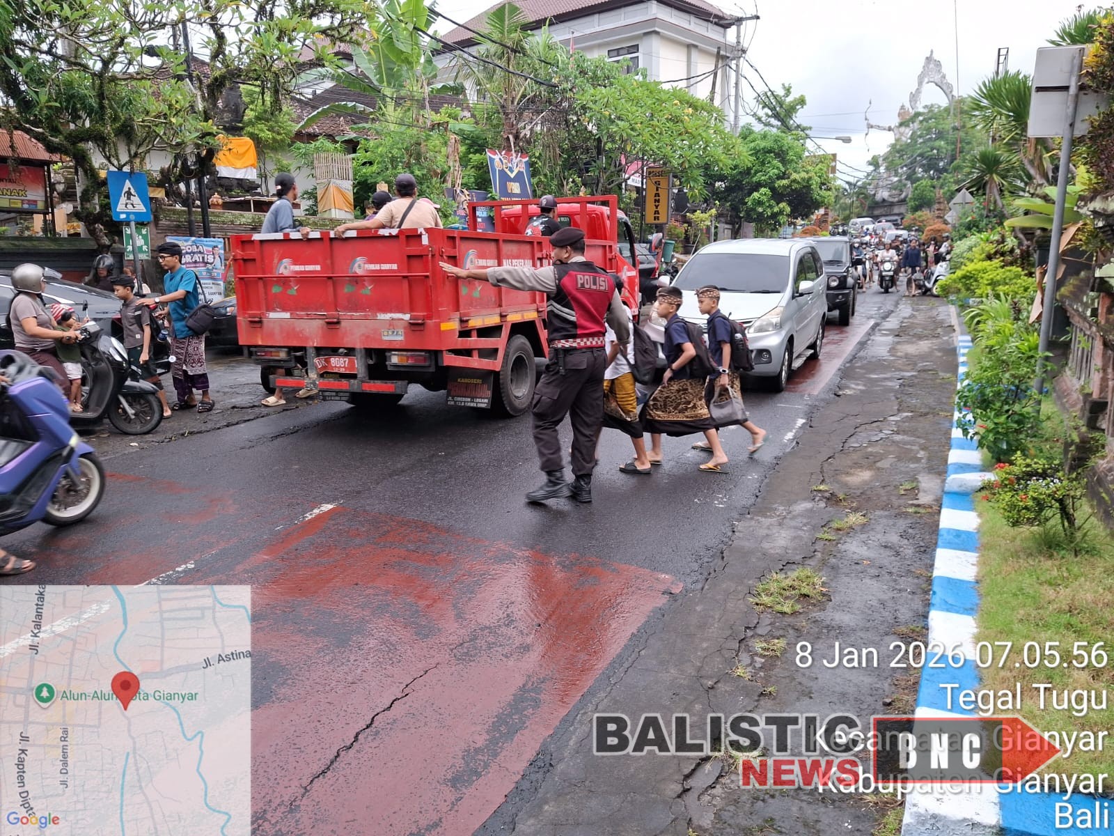 Gianyar – Dalam rangka memberikan pelayanan prima kepada masyarakat serta menjaga kelancaran dan keselamatan arus lalu lintas pada jam sibuk pagi hari, Polsek Gianyar melaksanakan kegiatan pengaturan dan penyeberangan lalu lintas pada Kamis (8/1/2026) pagi.