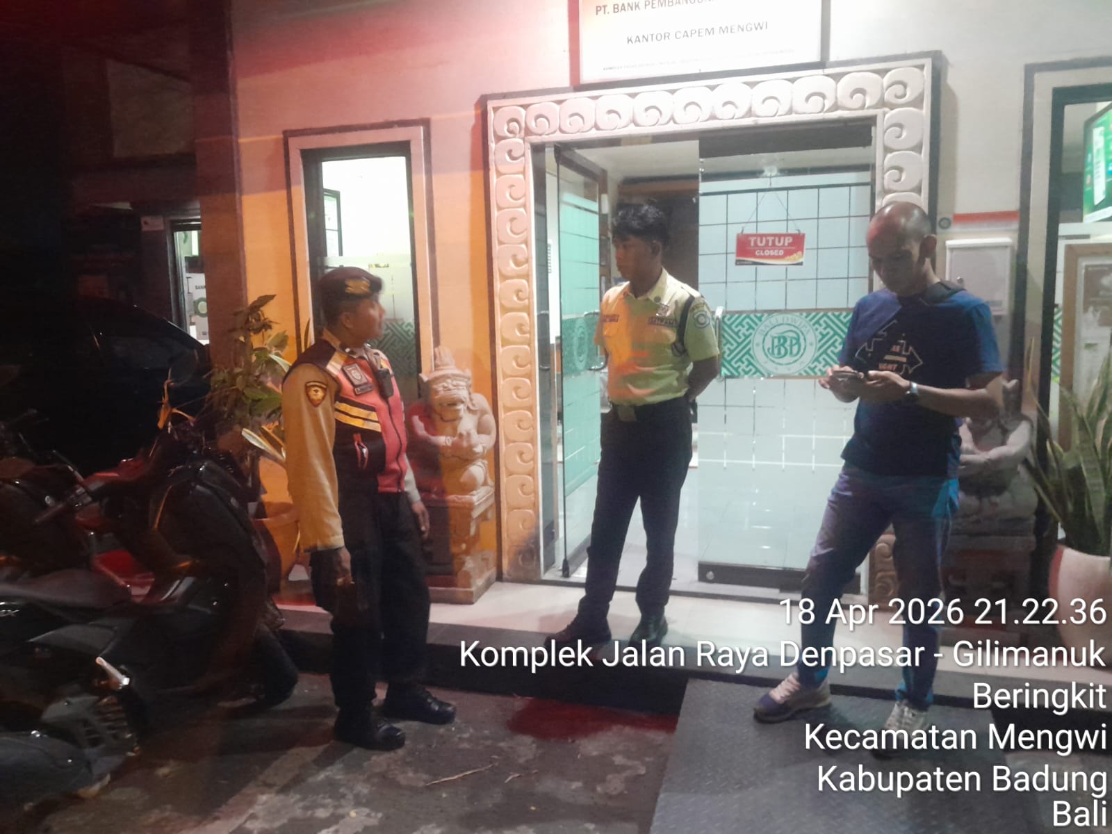 Kegiatan patroli ini dilaksanakan oleh personel Unit Samapta Polsek Mengwi sebagai langkah preventif guna mencegah potensi gangguan keamanan, khususnya di kawasan perbankan yang memiliki tingkat kerawanan cukup tinggi