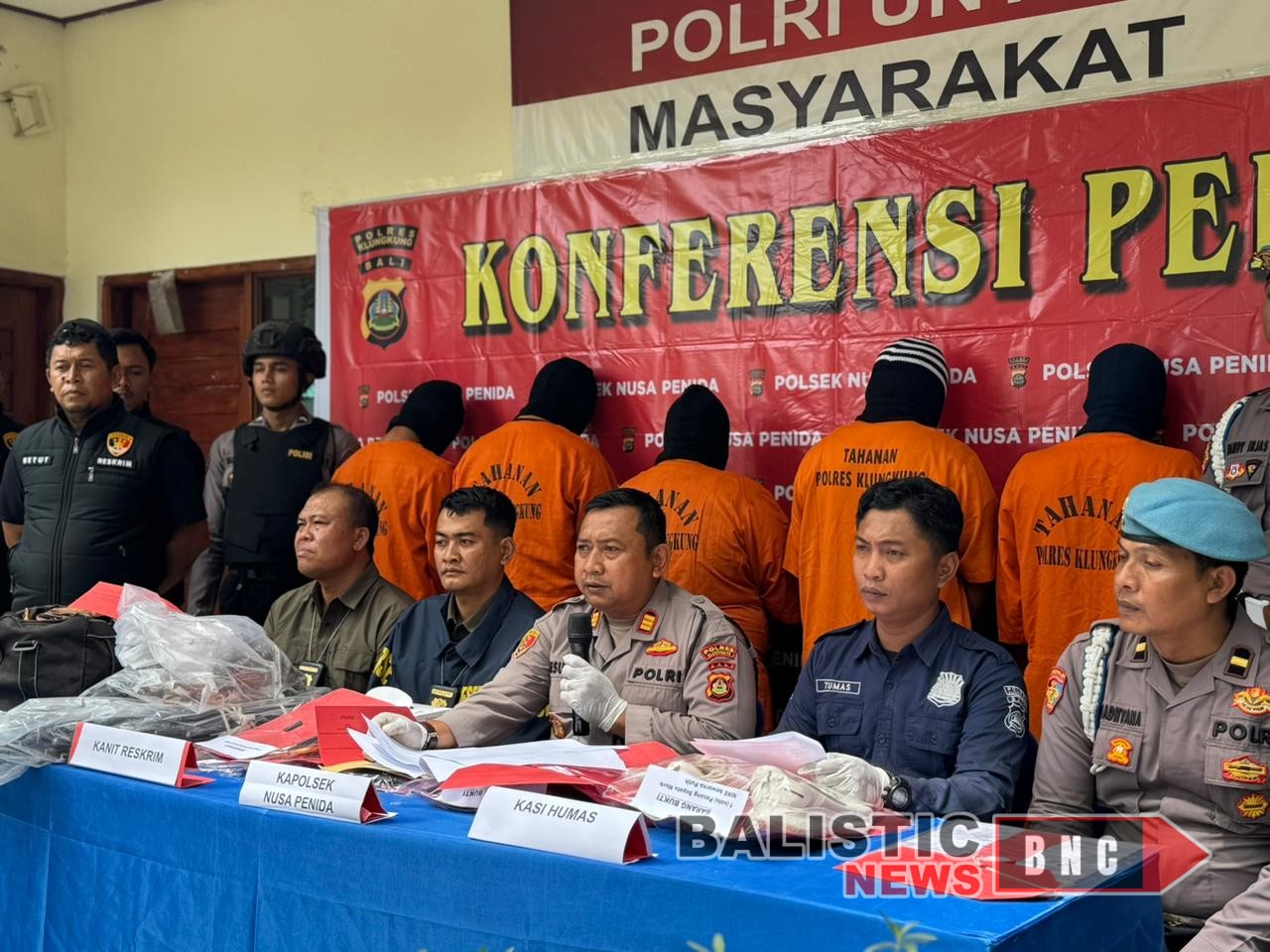 Balisticnews.com Nusa Penida – Polsek Nusa Penida menggelar konferensi pers pengungkapan sejumlah kasus tindak pidana yang berhasil diungkap oleh Unit Reskrim Polsek Nusa Penida, Kamis (13/11/2025) di Polsek Nusa Penida.
