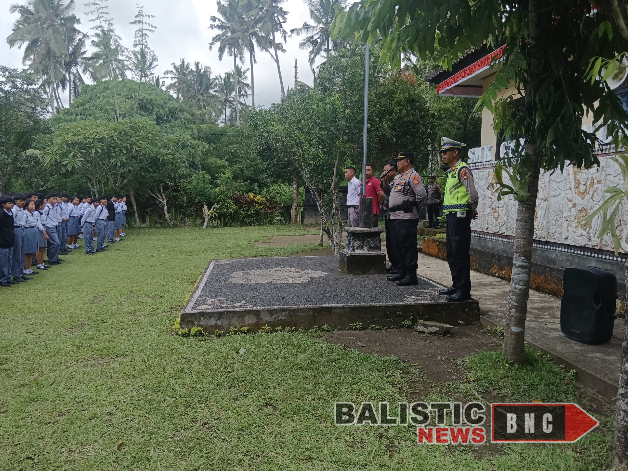 Balisticnews.com RENDANG – Kegiatan Wakapolsek Rendang AKP I Made Sutirta,SH bersama Kanit Lantas AKP I Wayan Suberata,SH bersama anggota sambangi sekolah SMK GIri Pandawa Nongan Sampaikan Himbauan kamtibmas , selasa 6/1/2026