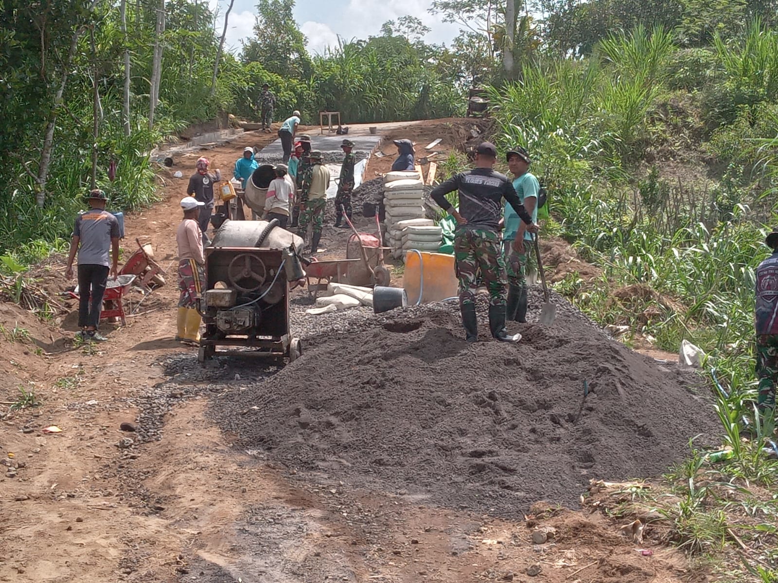Satgas TMMD ke – 128 Kodim 1623/Karangasem Kejar Progres pembangunan senderan Jalan pada hari ketiga