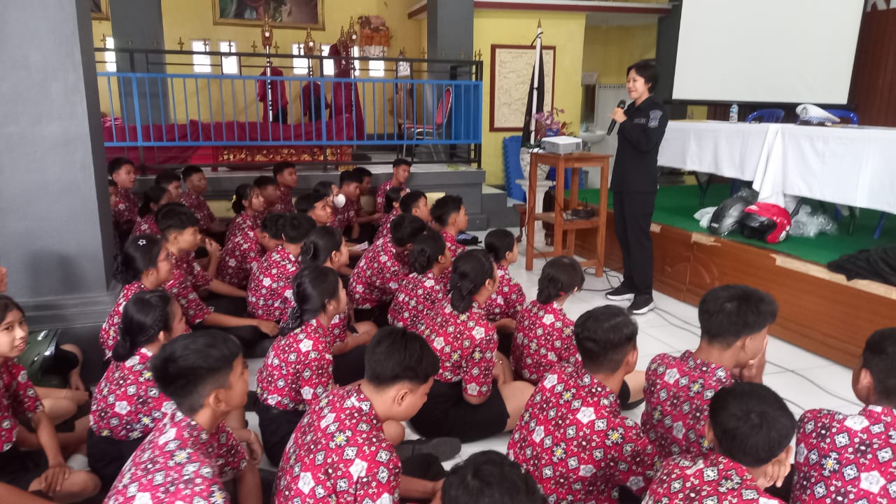Materi yang diberikan meliputi pemahaman rambu-rambu lalu lintas, pentingnya kelengkapan kendaraan termasuk pemasangan Tanda Nomor Kendaraan Bermotor (TNKB), serta bahaya kecelakaan lalu lintas yang kerap melibatkan anak di bawah umur serta bijak menggunakan media sosial. Kegiatan semakin seru dengan sesi tanya jawab berhadiah helm SNI, tas sekolah, dan pembagian brosur keselamatan, yang disambut antusias para pelajar.