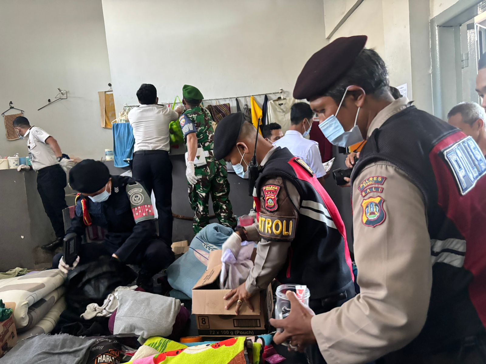 Selanjutnya, personel gabungan dibagi menjadi dua tim untuk melaksanakan penggeledahan pada Blok Hunian A (Wisma Asri), baik lantai bawah maupun atas. Sebanyak 16 kamar dengan total 395 warga binaan menjadi sasaran pemeriksaan.