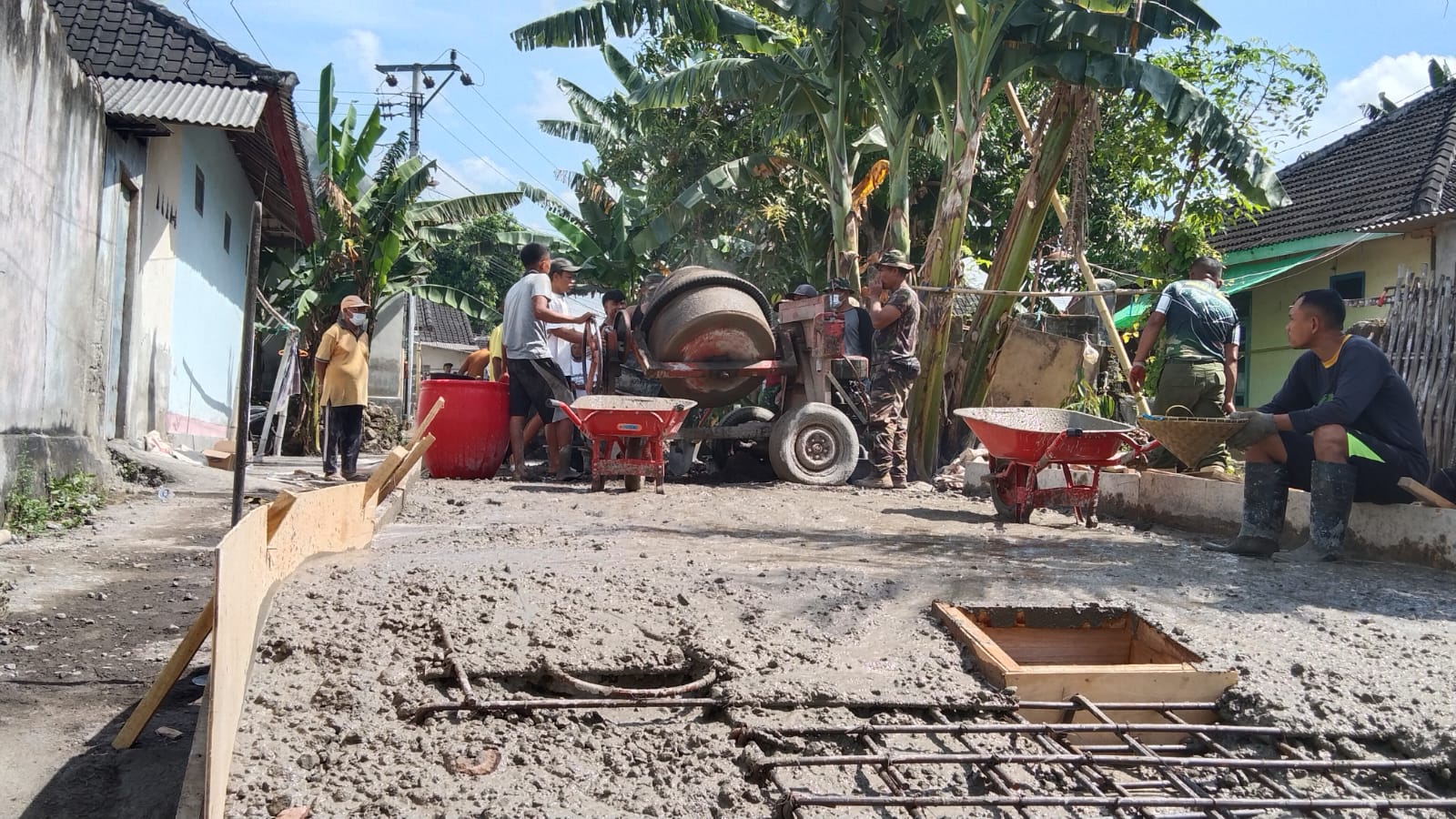 Pelda Nukman menyampaikan bahwa pengerjaan pengecoran jalan ini dilakukan secara gotong royong bersama masyarakat setempat. Sinergi antara TNI dan warga menjadi kunci utama dalam percepatan penyelesaian sasaran fisik TMMD.