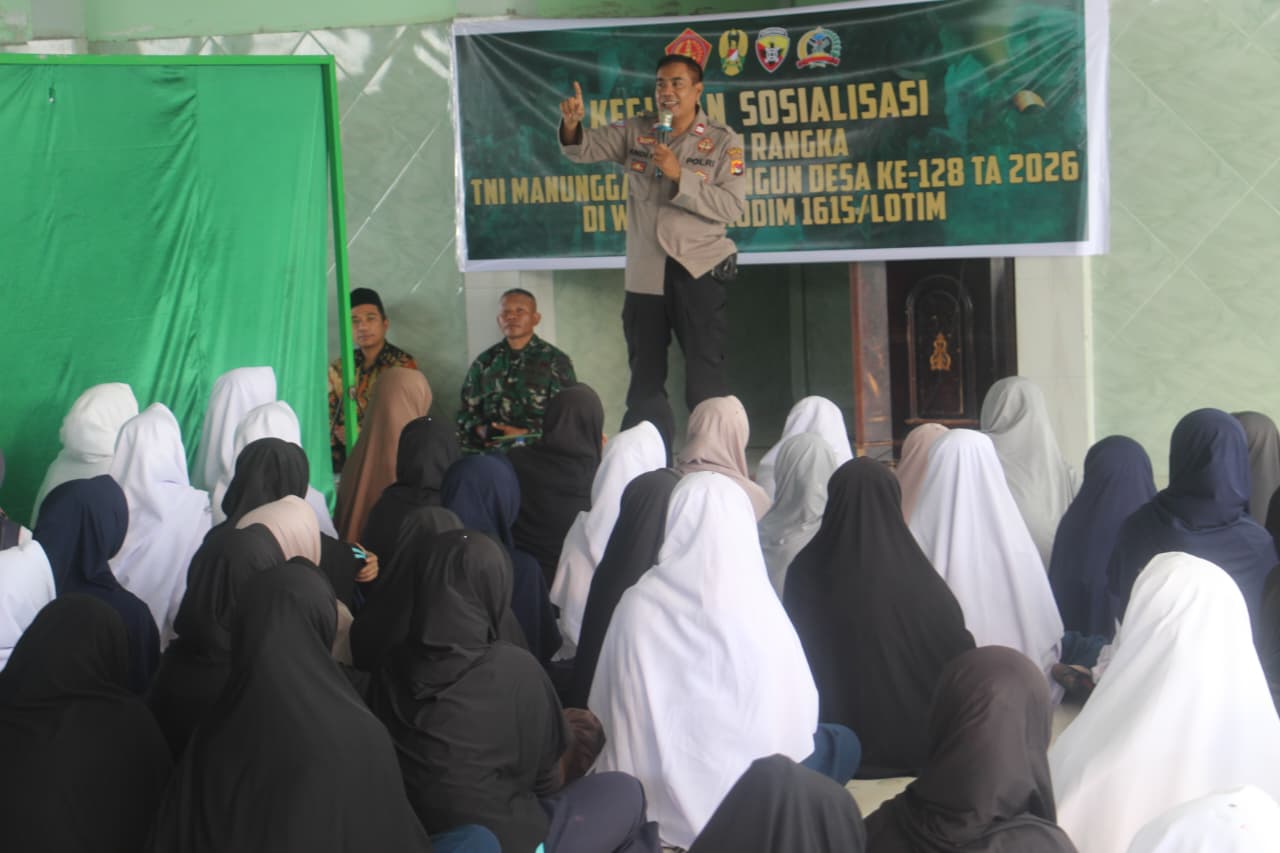 Lombok Timur – Dalam rangka mendukung program TNI Manunggal Membangun Desa (TMMD) Ke-128 Kodim 1615/Lombok Timur, kegiatan nonfisik berupa penyuluhan tentang bahaya narkoba dan bullying dilaksanakan di Pondok Pesantren Nurul Falah NW, wilayah Kecamatan Suralaga, Rabu (29/04/2026).