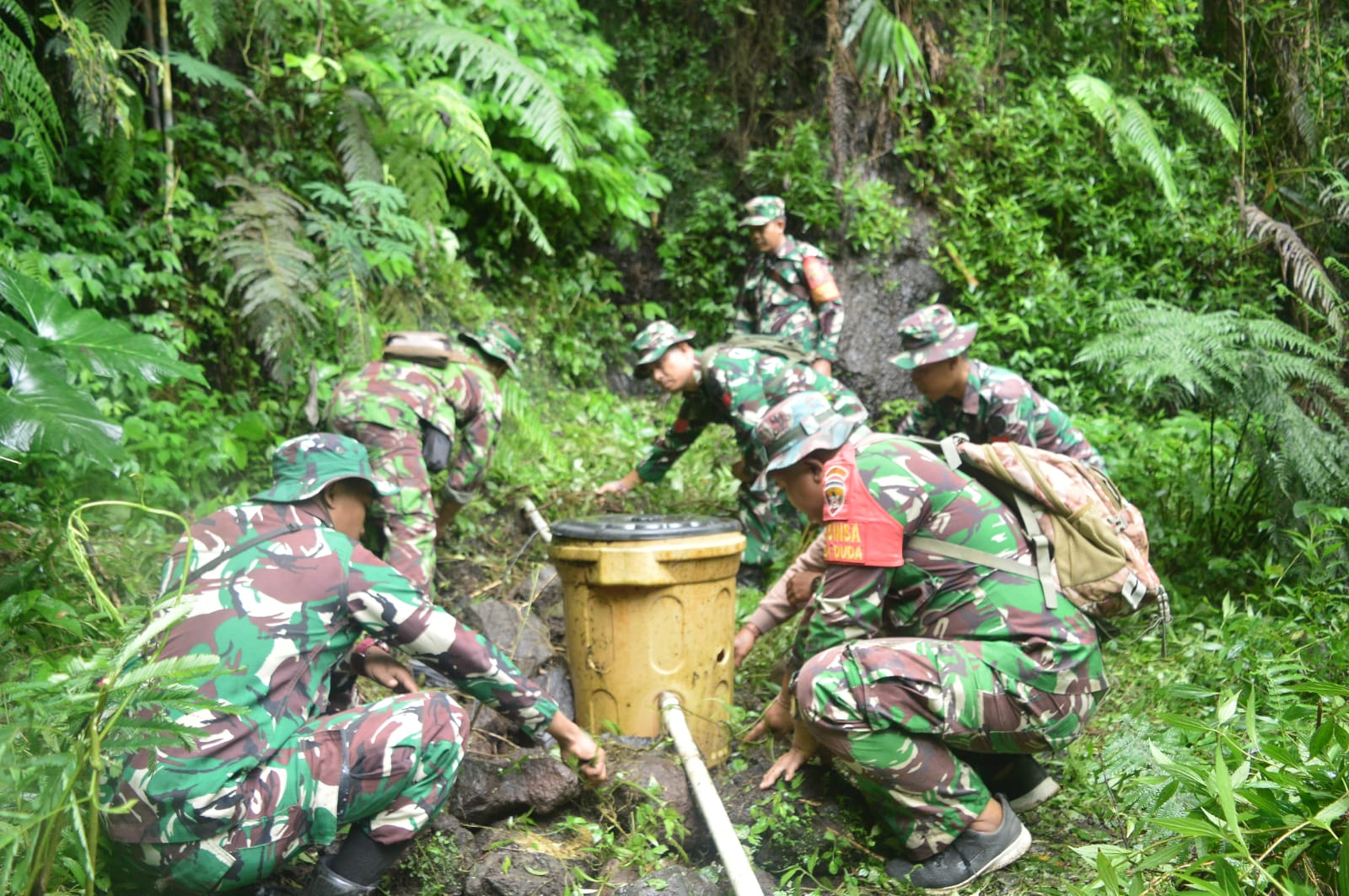 Pada pagi ini, Satgas TMMD memulai pengerjaan pipanisasi sepanjang kurang lebih 100 meter yang akan menjadi sarana vital dalam mendistribusikan air bersih ke masyarakat Desa Sebudi, Selasa (28/4/2026).