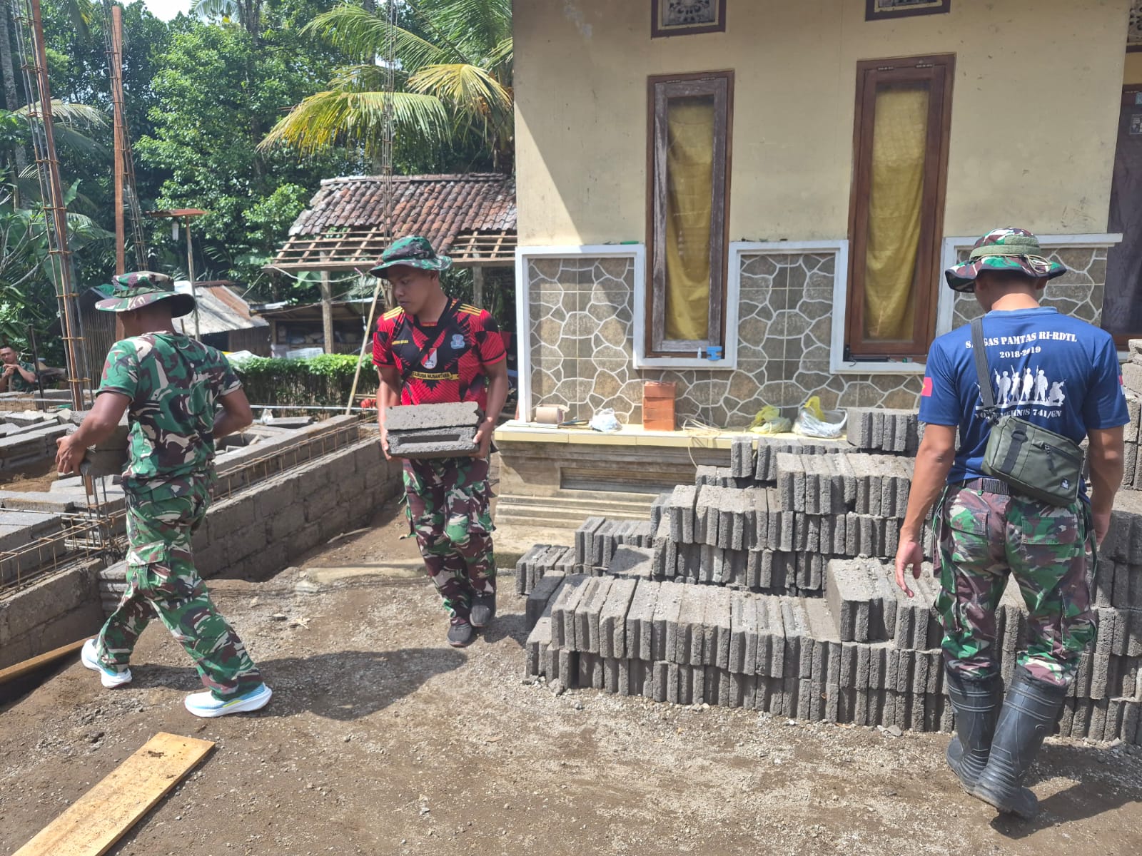 Satgas TMMD berlomba dengan waktu untuk Pembangunan Rumah Tak Layak Huni (RTLH) I Wayan Budiana (50) bertempat di Banjar Pule, Desa Pempatan, Kecamatan Rendang, Kab, Karangasem. Sabtu (25/04)