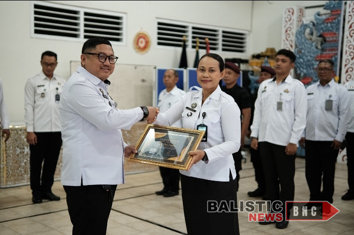 Tabanan, balisticnews.com – Bertempat di Aula Candra Prabhawa, Lembaga Pemasyarakatan (Lapas) Kelas IIB Tabanan memberikan apresiasi dengan menyerahkan penghargaan bagi pegawai teladan periode bulan Agustus tahun 2025, Senin (15/09). Pemberian reward ini merupakan bentuk apresiasi bagi pegawai yang telah menunjukkan kinerja yang maksimal serta konsisten dalam pelaksanaan tugas.