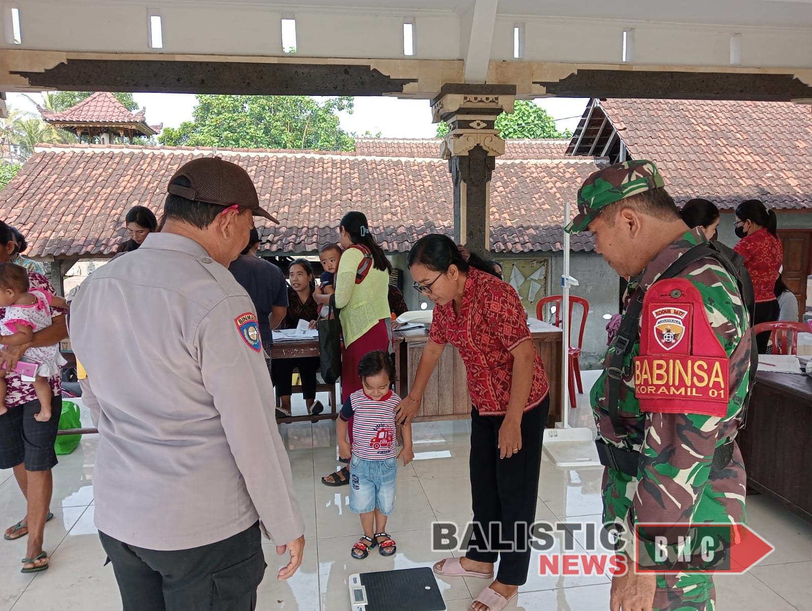 Serka Khoirianto bersama Babinkamtibmas bripka I Komang Artawa dan Pol Prades Nyoman Suardika melaksanakan pendampingan pelaksanaan Posyandu, bertempat di Balai Banjar Lemodang, Desa Perancak, Kecamatan Jembrana, Kabupaten Jembrana. Kamis (10/04/2025).