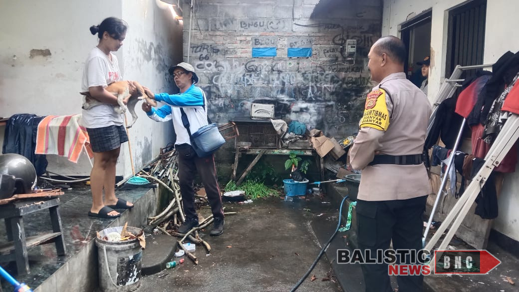 Gianyar, balisticnews.com – Bhabinkamtibmas Kelurahan Gianyar bersama Kepala Lingkungan Sangging, Dewa Prawira Negara, melaksanakan monitoring dan atensi kegiatan vaksinasi rabies terhadap hewan anjing di Lingkungan Sangging, Kelurahan Gianyar, Kecamatan Gianyar, Kabupaten Gianyar.