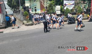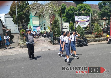 Bubaran Anak Sekolah, Unit Lantas Polsek Bangli Laksanakan Pengaturan di Depan SMPN 1 Bangli