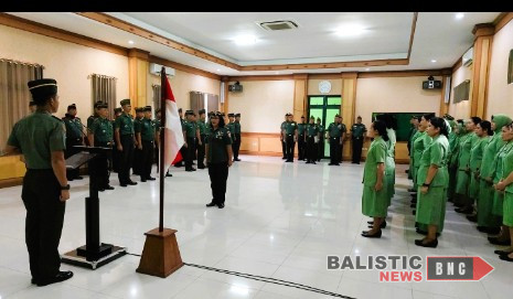 DENPASAR, balisticnews.com – Komandan Kodim 1611/Badung, Kolonel Inf I Putu Tangkas Wiratawan, S.I.P., melaksanakan upacara korps raport kenaikan pangkat sejumlah personel dan purna tugas prajuritnya di Aula Makodim 1611/Badung.