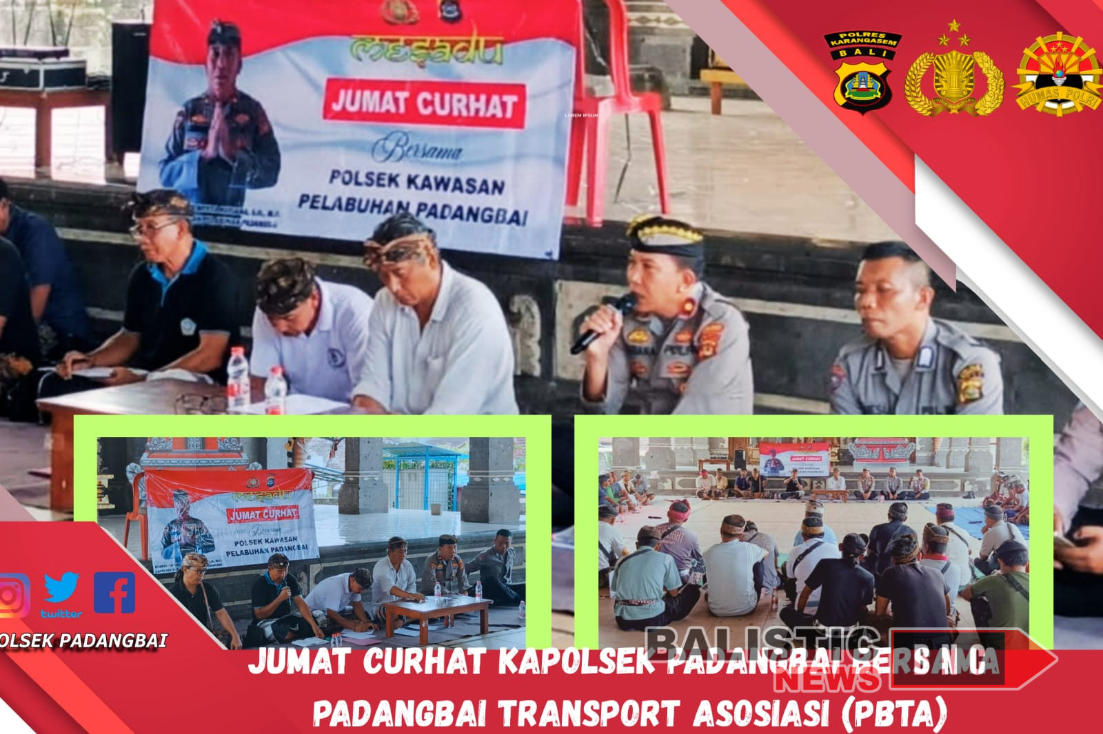 Balisticnews.com Polda Bali –Polres Karangasem –Polsek Kawasan Pelabuhan Padangbai, – Jumat, 30/5/2025, Kapolsek Kawasan Pelabuhan Padangbai, Kompol I Nyoman Merta Kariana, S.H., M.H., melaksanakan kegiatan Jumat Curhat bersama anggota Padangbai Transport Asosiasi (PBTA) bertempat di Balai Masyarakat Desa Padangbai. Kegiatan ini dilaksanakan pada 23/5/2025, dimulai pukul 10.00 WITA dan dihadiri oleh berbagai unsur masyarakat.