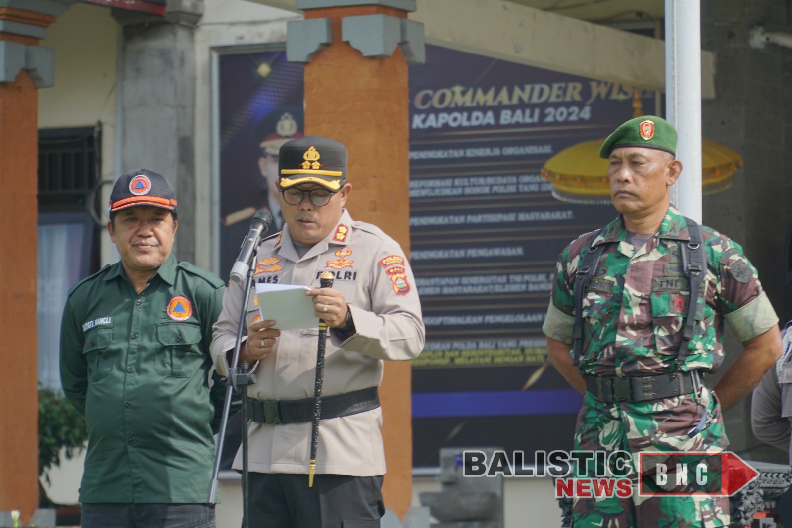 Bangli, balisticnews.com – Dalam rangka meningkatkan kesiapsiagaan menghadapi potensi bencana hidrometeorologi di wilayah Kabupaten Bangli, Polres Bangli menggelar Apel Kesiapan Tanggap Darurat Bencana Hidrometeorologi, Rabu (5/11/2025) pagi, bertempat di Lapangan Apel Polres Bangli.