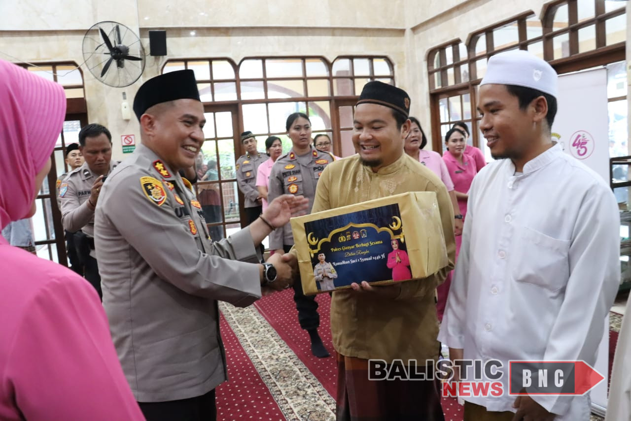 Gianyar, balisticnews.com – Dalam rangka memperingati Bulan Suci Ramadhan, Kapolres Gianyar AKBP Umar, S.I.K., M.H. didampingi oleh Ketua Bhayangkari Cabang Gianyar, Ny. Elisa Umar, memberikan paket sembako kepada marbot dan pengurus Masjid Nurul Yaqin Desa Bedulu Kecamatan Blahbatuh Gianyar. Jumat (14/3/2025).