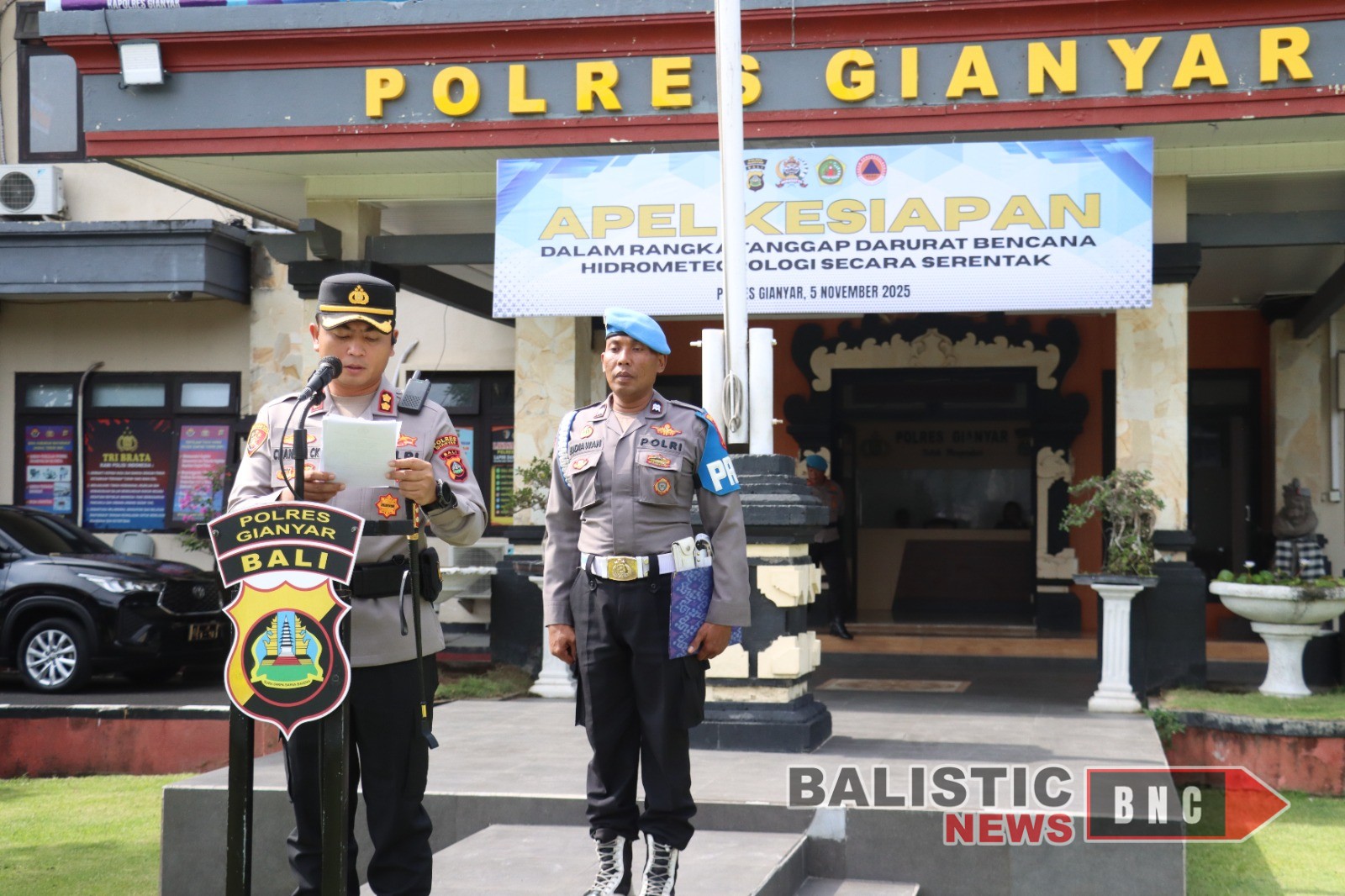 Gianyar, balisticnews.com – Dalam rangka menghadapi potensi bencana hidrometeorologi pada musim hujan, Polres Gianyar menggelar Apel Kesiapan Pasukan dan Peralatan Tanggap Darurat Bencana yang dipimpin langsung oleh Kapolres Gianyar AKBP Chandra C. Kesuma, S.I.K., M.H., bertempat di Lapangan Apel Tri Brata Polres Gianyar, Rabu (5/11/2025).